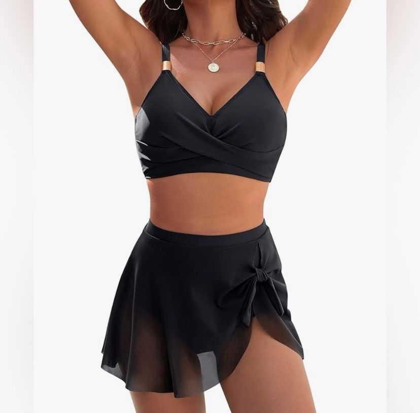 NWT Blooming Jelly Women’s Large High Waisted Bikini Set Gold Metal Two Piece Swimsuit Tummy Control Tie Knot 2026 Bathing Suit with Skirt. This black bikini set is perfect for a stylish day at the beach. The sleek design offers both comfort and sophistication. Ideal for those who love a classic look. Located in Goodyear off Van Buren and Cotton S530