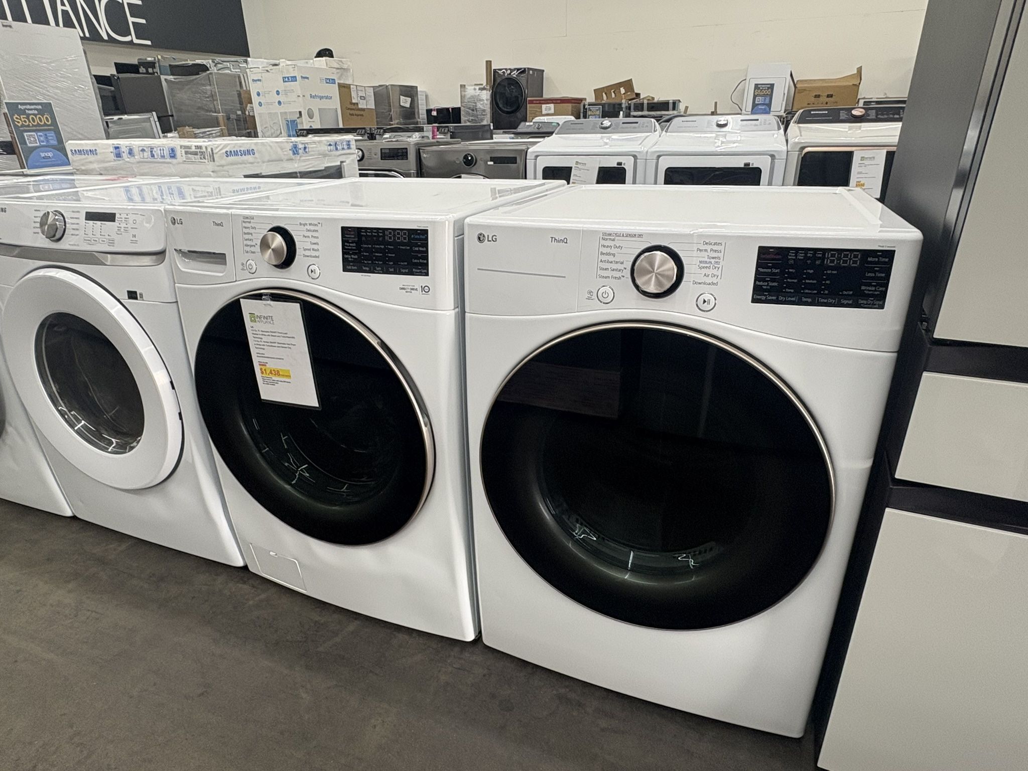 LG 4.5 Cu. Ft. Stackable SMART Front Load Washer in White with Steam and TurboWash360 Technology 7.4 Cu. Ft. Vented SMART Stackable Gas Dryer in White with TurboSteam and Sensor Dry Technology OPEN BOX Model:#WM4000HWA/DLGX4001W Delivery available 1 year warranty Come visit us! Open 7 days Hablamos espanol Reg price $2,398 Sale price $1,438 FOR BOTH Take it home today only $39 down No cred1t needed