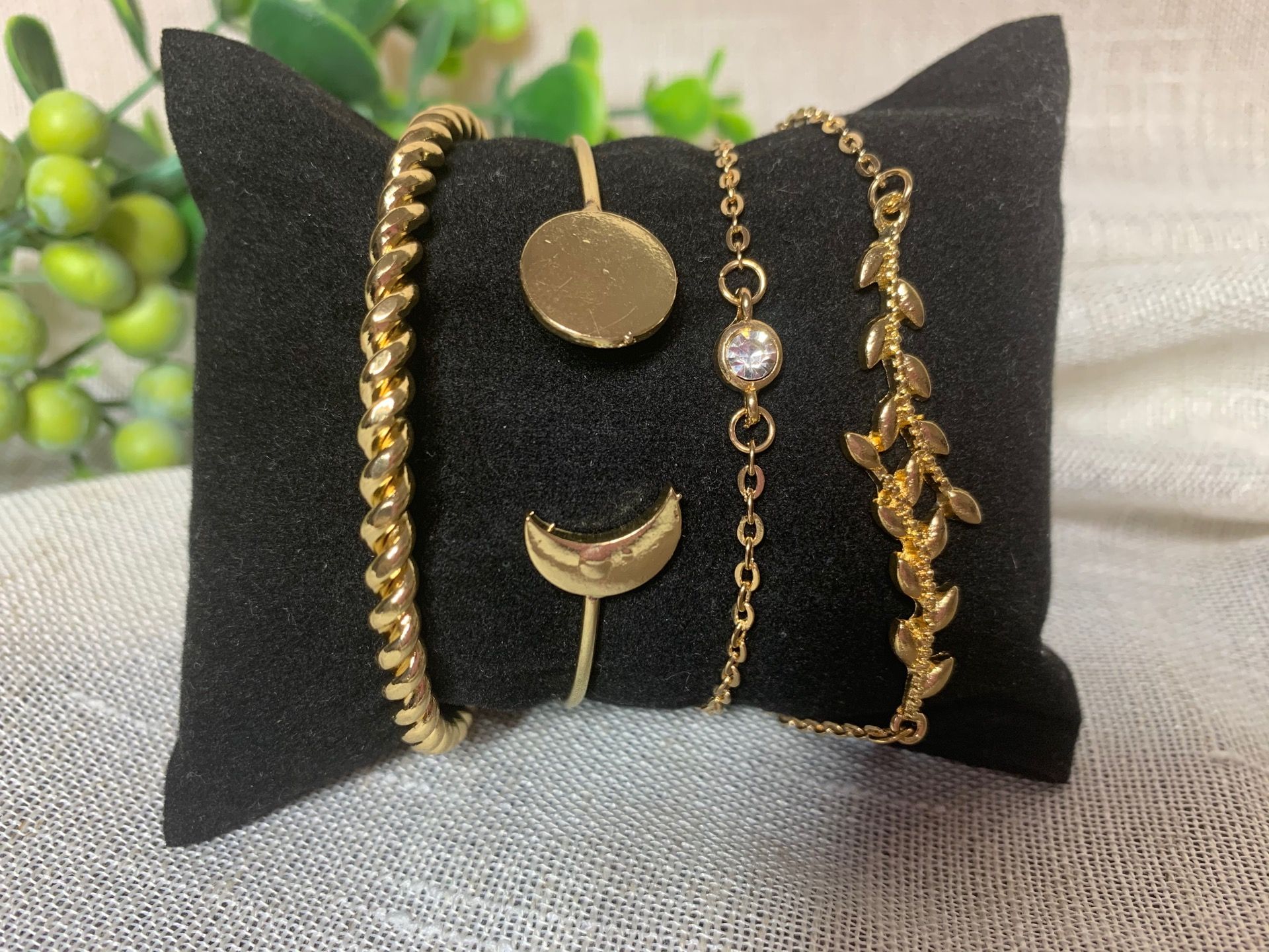 4 PC Women Charm Crystal Gold Plated Cuff Bracelet