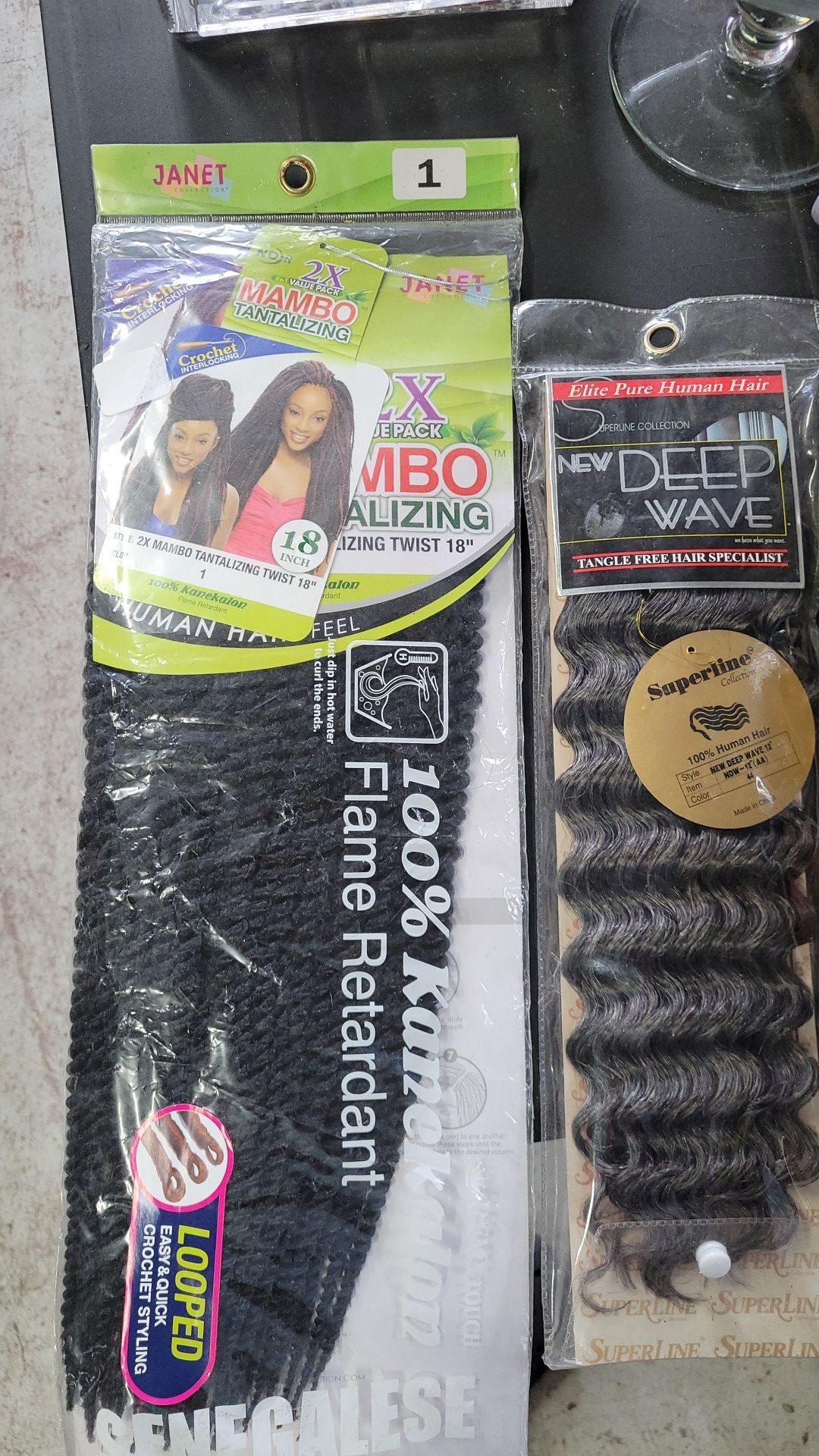 The one has 2 in 1 value pack 18" long. The other one is Elite 100% pure Human hair, tangle freeDeep wave 12" long. Selling both together for $15. Firm on the price.. Thanks for looking at my page.