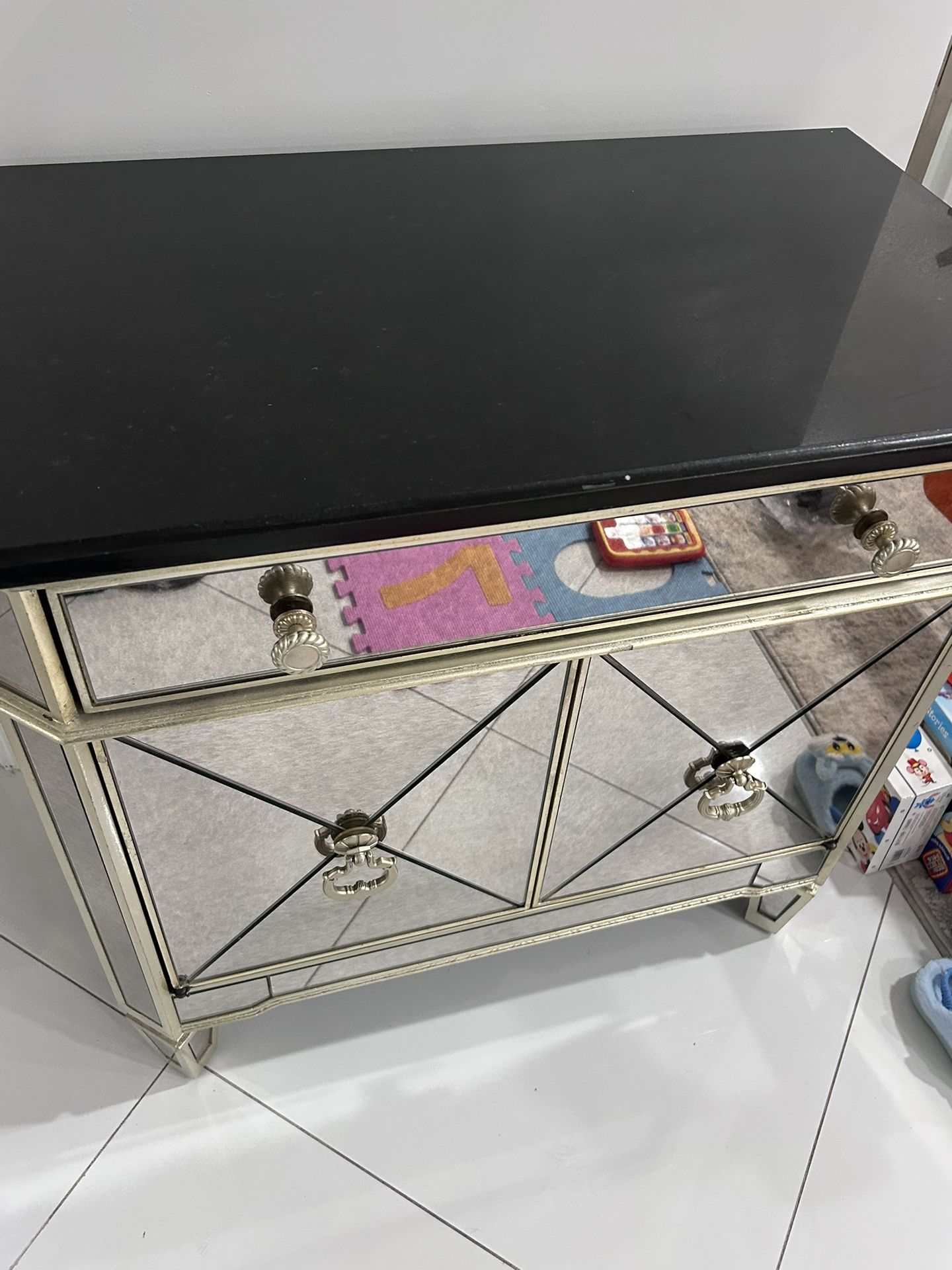 Beautiful nightstand whit corso black top gold color whit glass