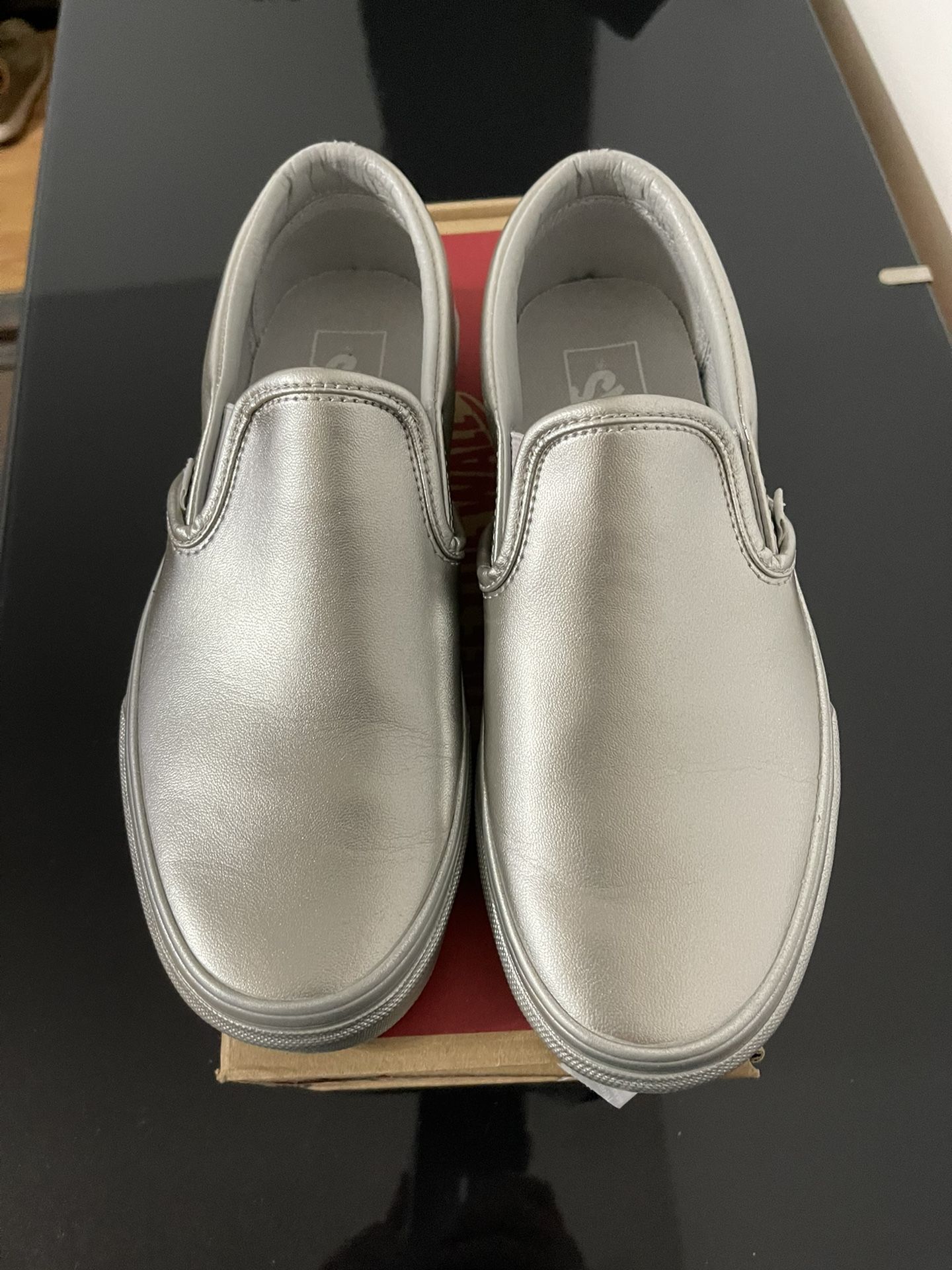 Vans Classic Slip On Metallic Sidewall Silver Low Top Sneakers VN0A38F7QTV size 7.5 Women
