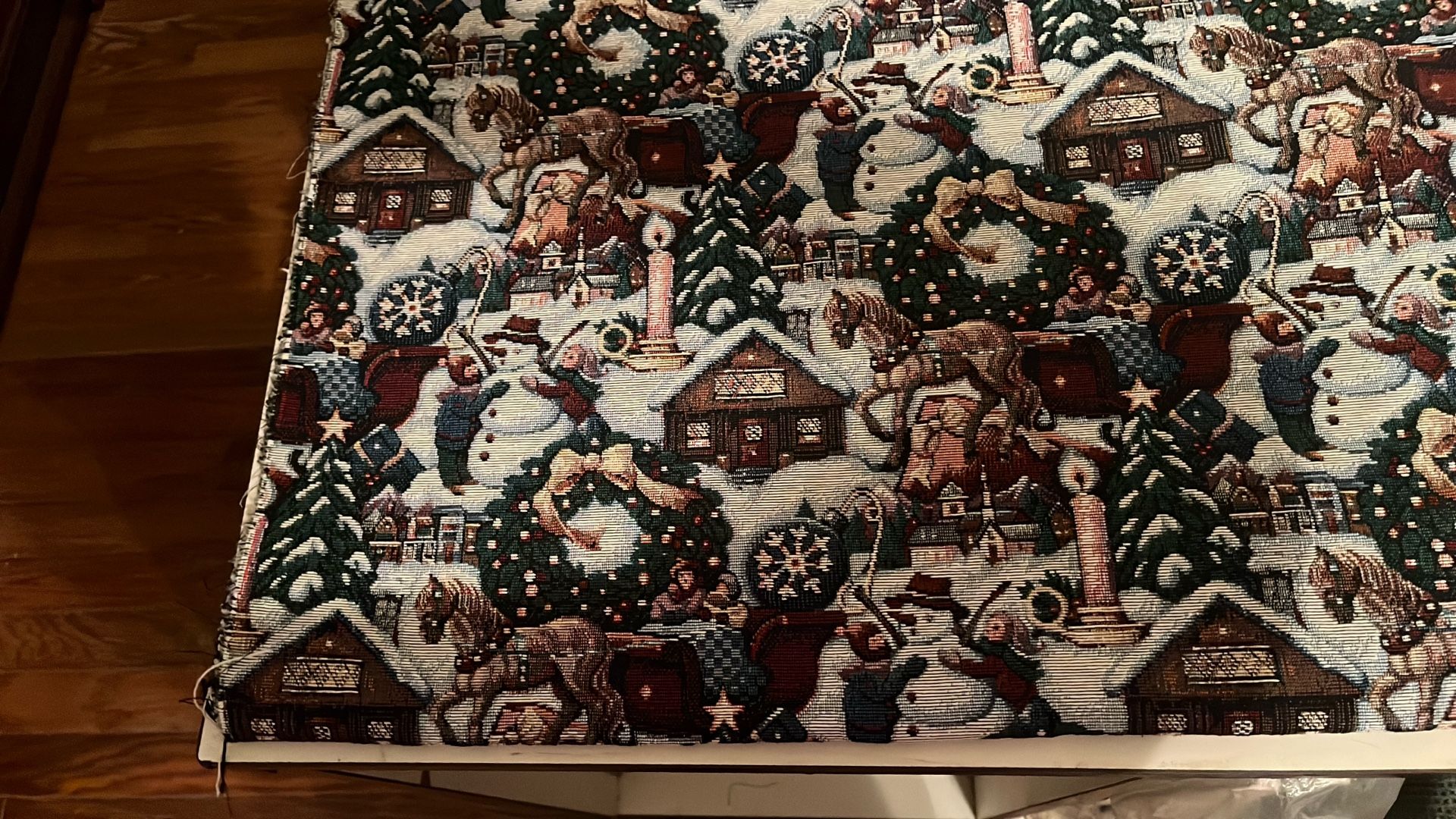 MODA tapestry fabric with snow people and village scenery. Approximately 4 1/2 yards. Prices for all 4 yards.