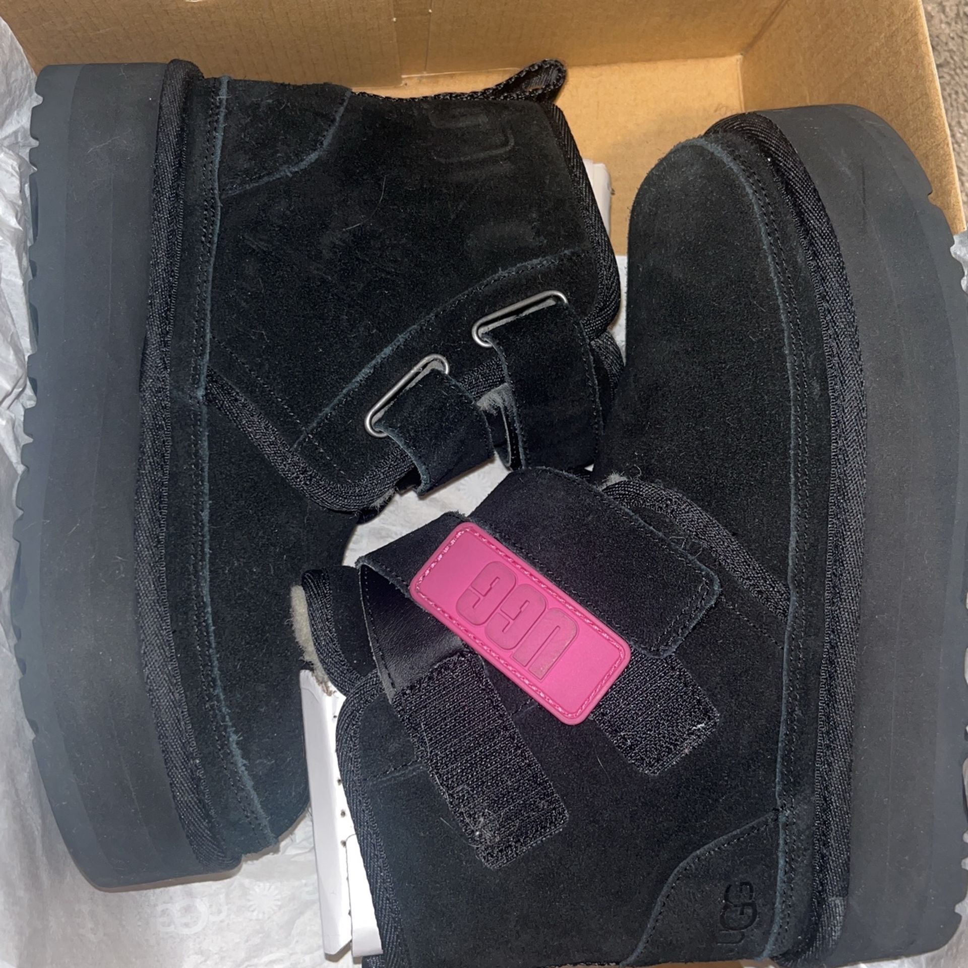 Black platform Uggs with Velcro strap, worn once. Size 2