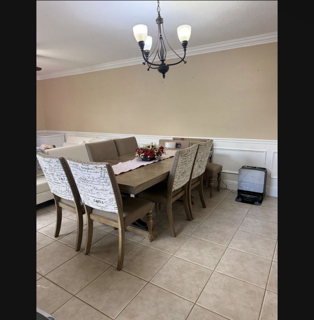 Used table with some minor signs of wear. 6 chairs + bench (2-3 people ) It needs to be disassembled and removed from Boca Raton.