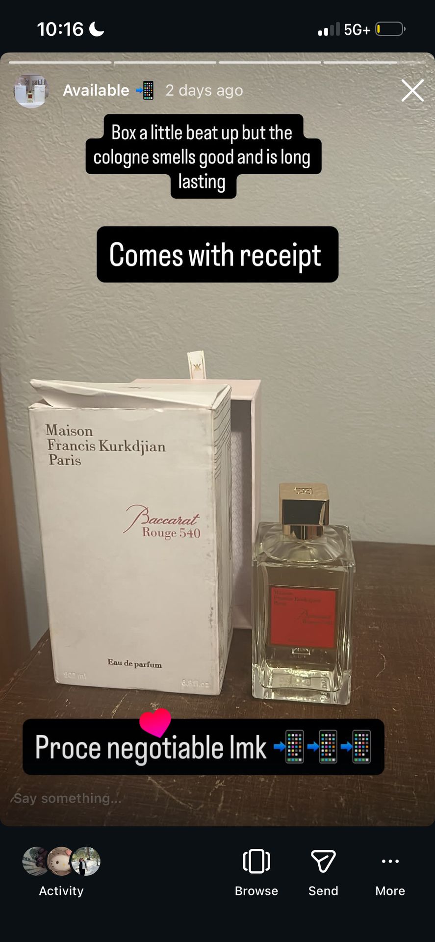 The performance is excellent as well—very long-lasting and strong projection, so a few sprays go a long way. Comes with the original box and receipt for proof of purchase. The receipt is slightly ripped but still included. Bottle is in great condition as shown in photos. Perfect for anyone looking to own a high-end fragrance at a better price. Condition: Gently used / see photos Pickup/Meetup: Available locally Message me if interested!