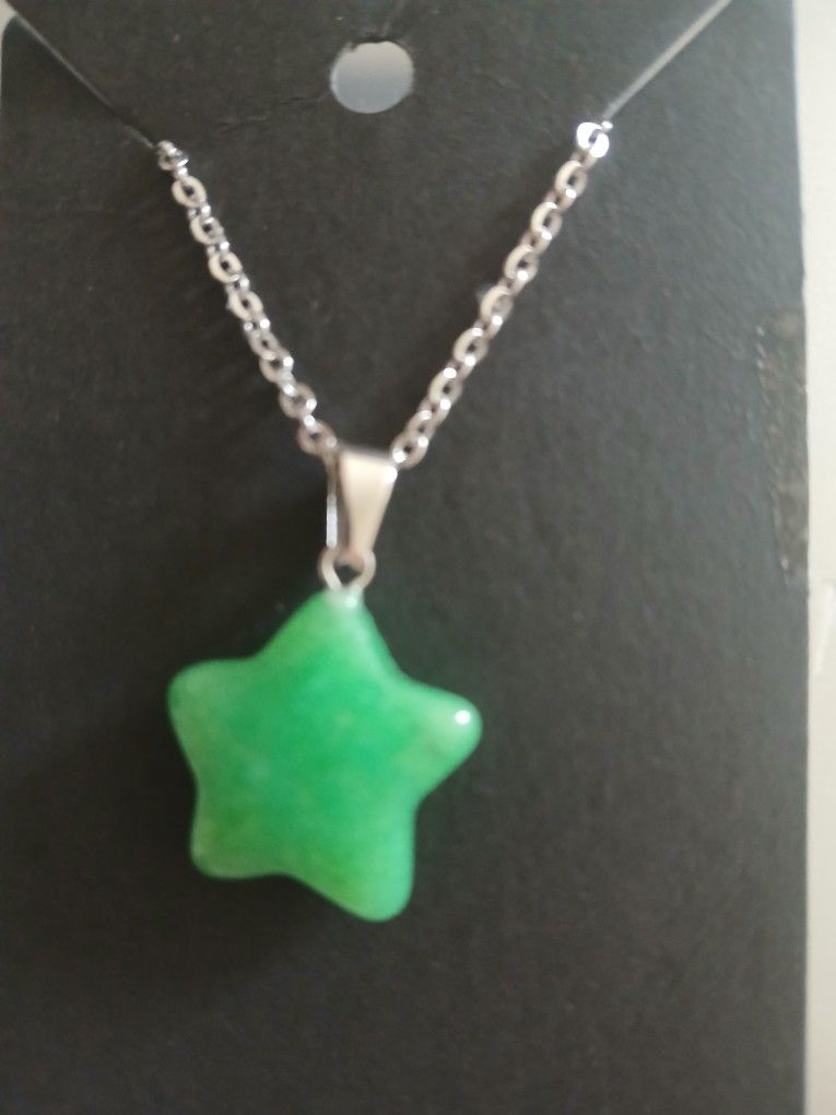 Authentic green aventurine star shaped pendant on a stainless steel chain. Handcrafted by me.