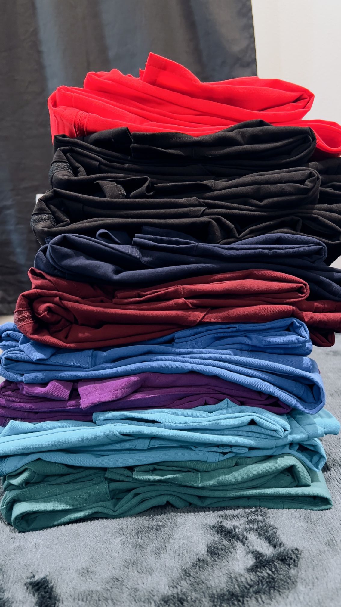Green, teal, purple, blue, burgundy, navy blue, 2 blacks, red