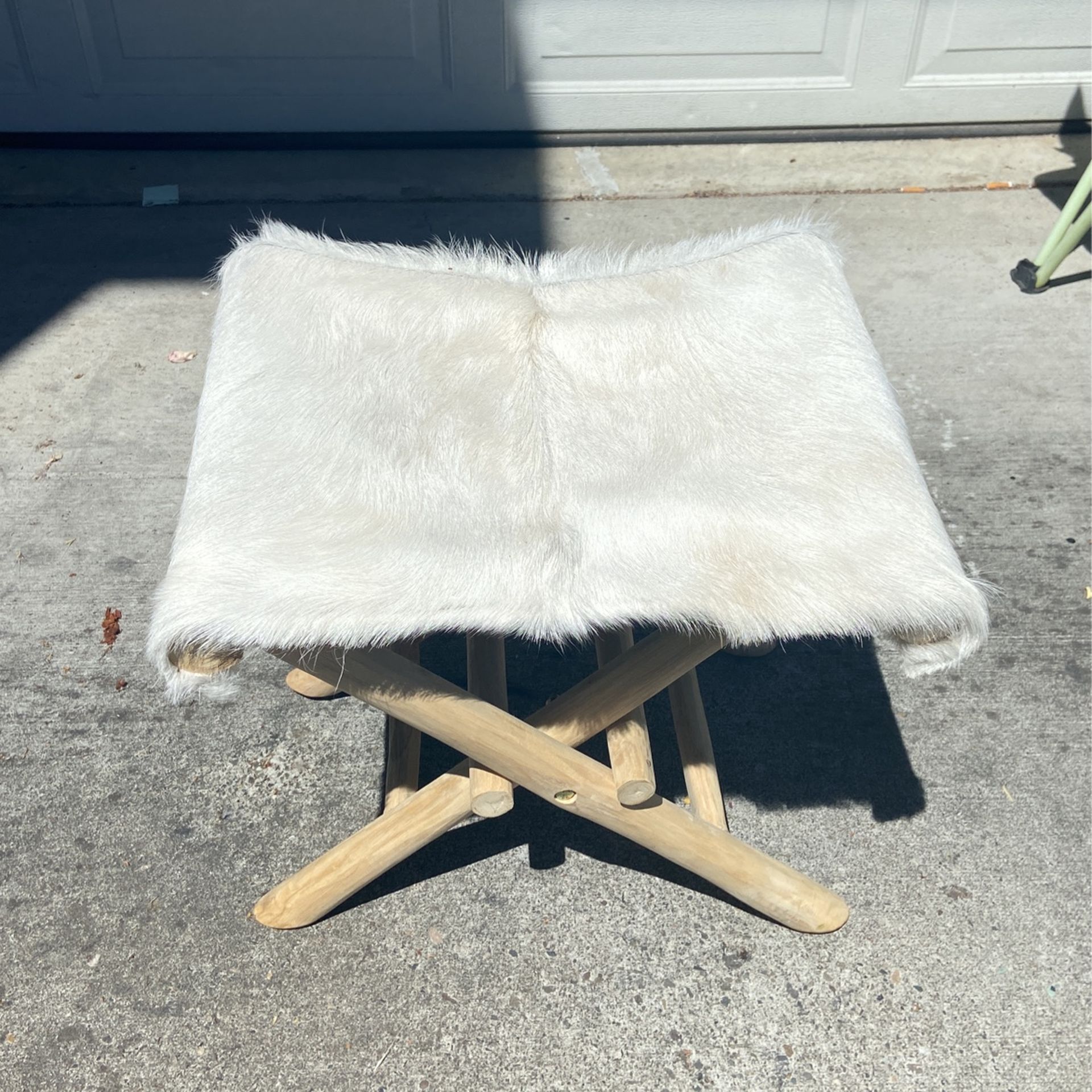Cute and funky real hair on hide and solid wood short stool. Can be used for sitting, decor, etc. $75 OBO can deliver for a small fee