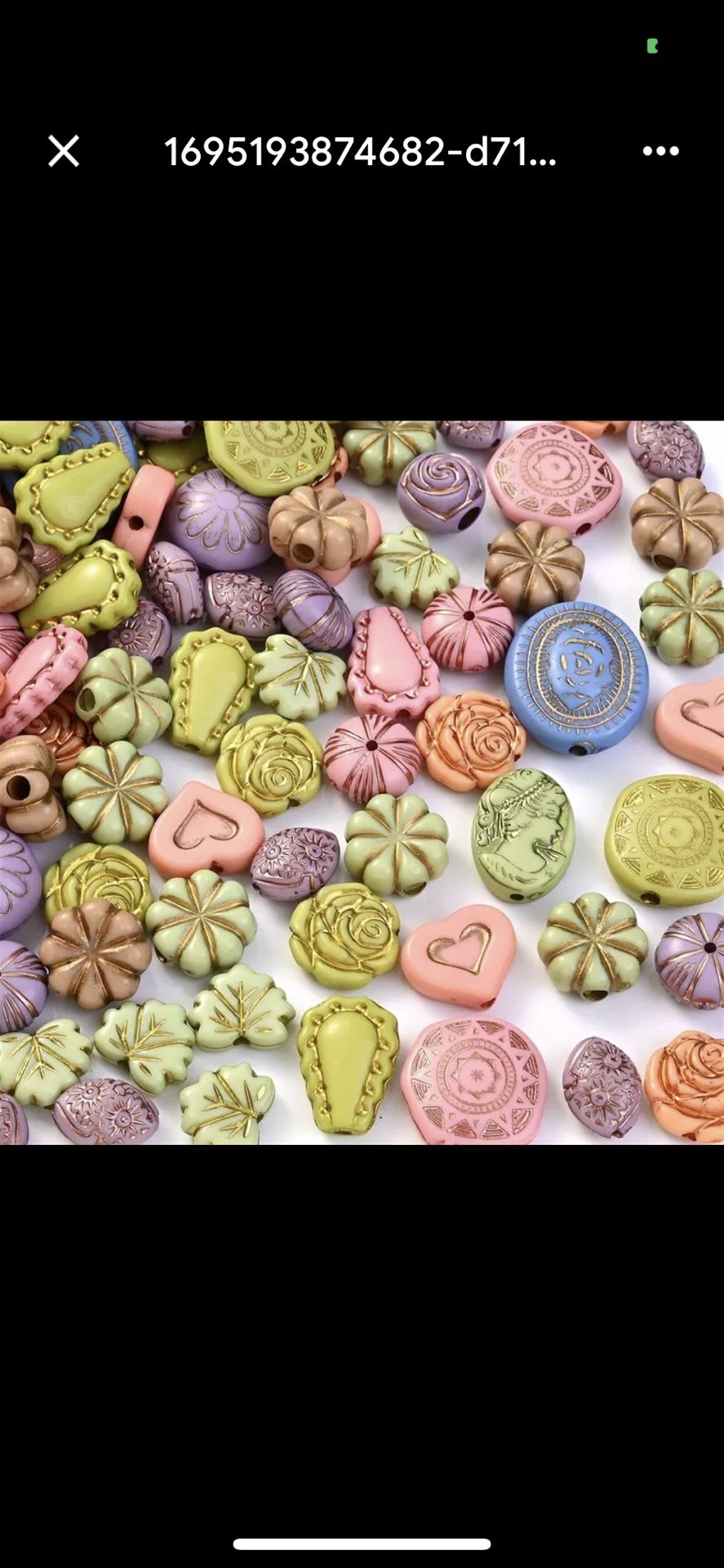 Assorted pastel-colored beads with intricate shapes and patterns. Perfect for crafting jewelry, keychains, or art projects. Condition: New Price: $2.50
