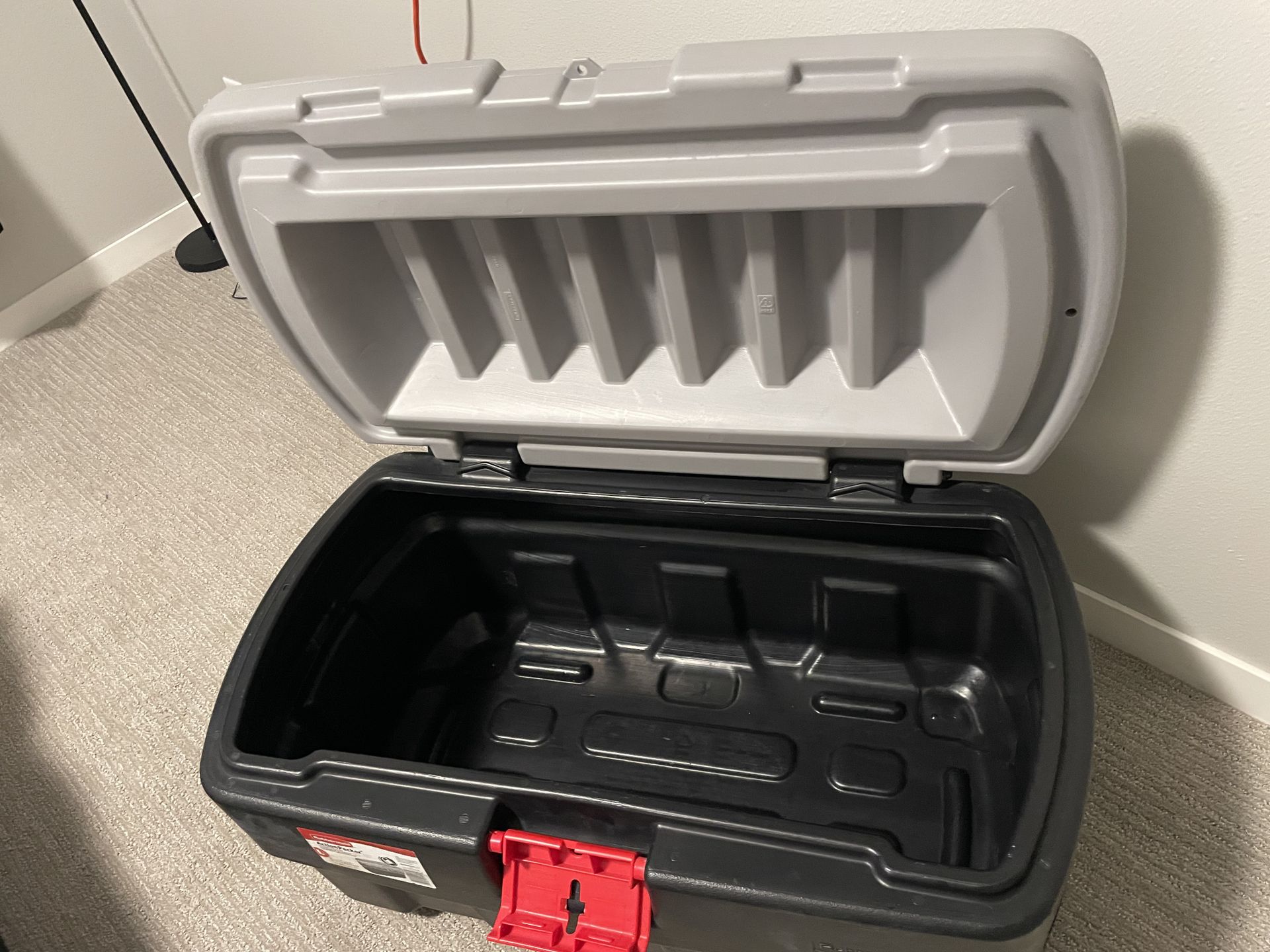 Rubbermaid Action Packer 35 gallon. Lockable.