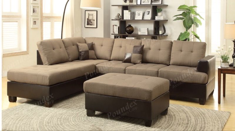 New in box, never used sectionals with ottoman and pillows! Delivery available, hablamos Español