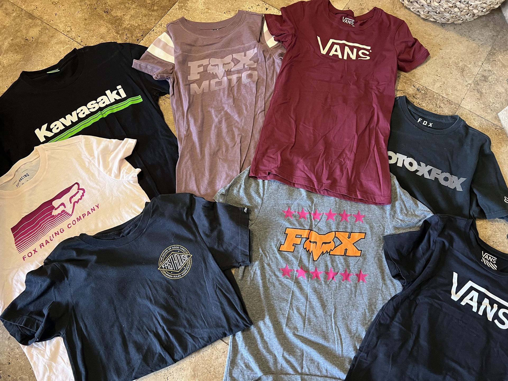 Women’s size small and medium ( they all fit alike ) shirts for sale. Fox / Vans / FastHouse / Kawasaki $15 obo for all. Must pick up Silverado Ranch and Bermuda.