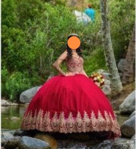 Vestido de quinceañera color burgundy, estilo corset de atras. Solo fue usado para session de fotos.