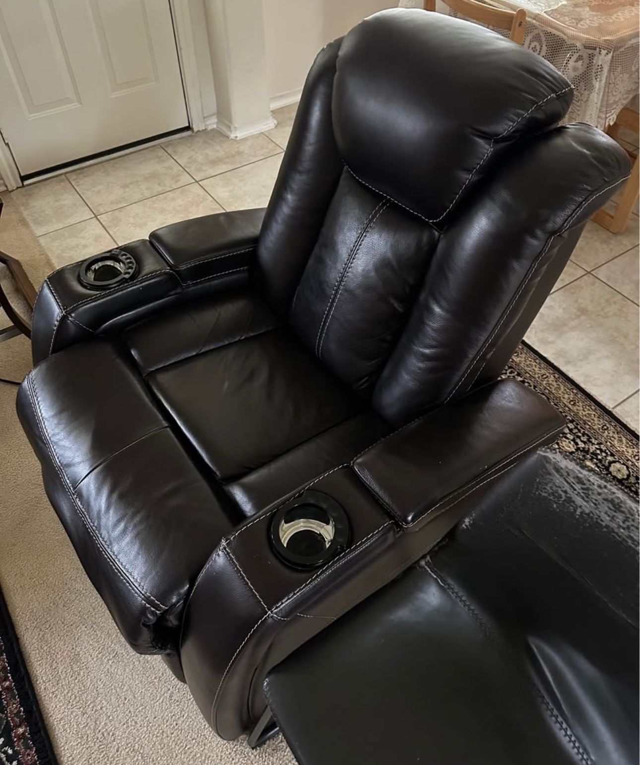 - Electric reclining function - LED-lit cup holders with control buttons for recline, headrest, and more - Hidden armrest storage compartments on both sides - USB charging port - Perfect for home theater setups or a cozy living room Everything works perfectly, only selling due to space.