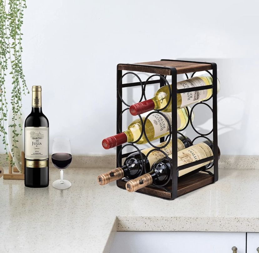 6 bottle wine rack (we have 2) - can be sold individually or together Rustic wood wine rack, perfect for small spaces 7.88” x 7.5” x 13.6” (height) Heat resistant, very strong and durable Must be picked up no later than 12 pm on Sunday 7.31