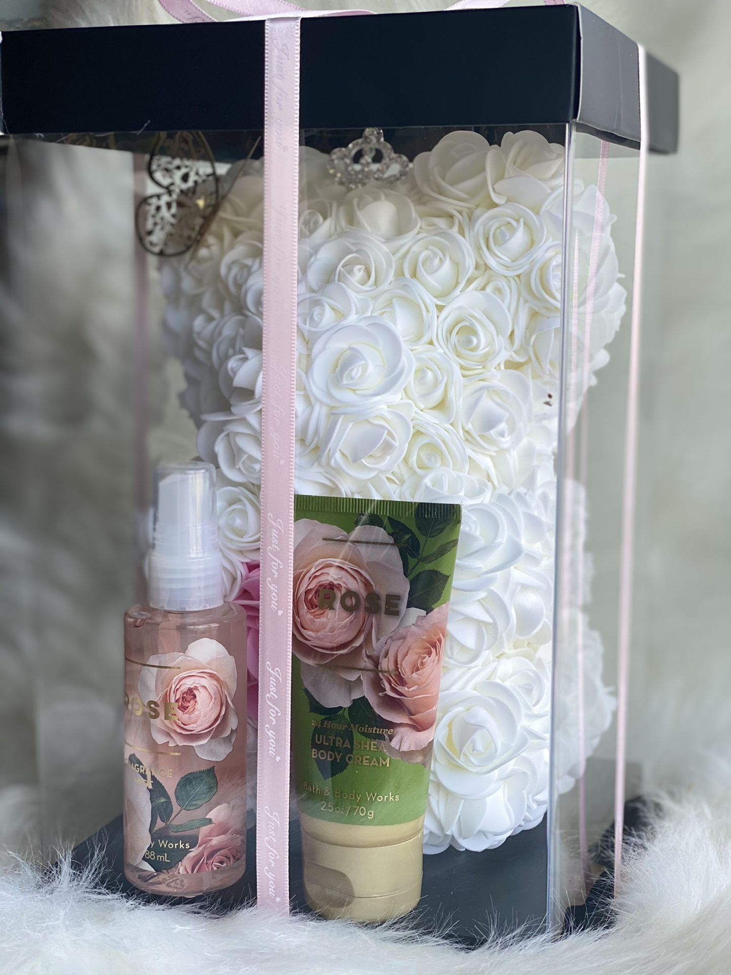 Beautiful rose bear comes with bath&body.... great for any occasion Made with lots of love and hard dedication ❤️