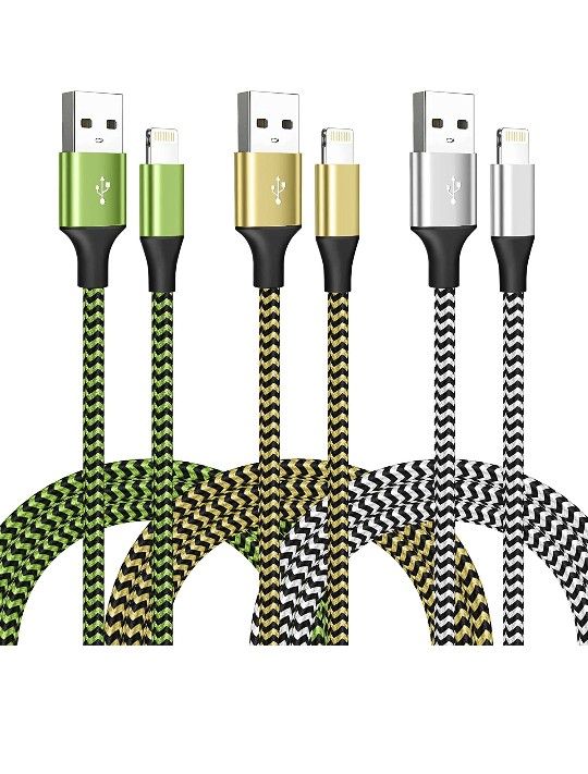 iPhone Charger 3Pack 6ft USB Lightning Cable Cord,Mfi Certified Apple Charger Fast Charging Nylon Braided iPhone Cable,Compatible with iPhone 14/13/12/11/X/Pro/Max/8/7/6/6S/SE/Plus/iPad