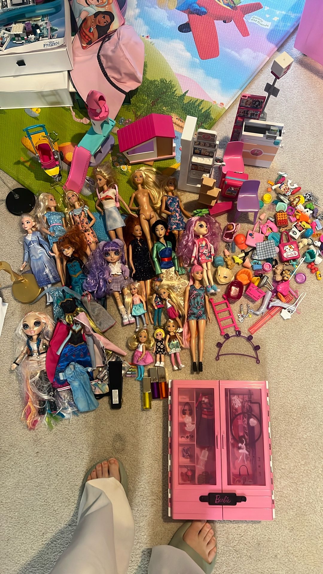 Lots of barbie and other dolls with accessories and playsets closet extras. Cash only pick up in South Tacoma area.