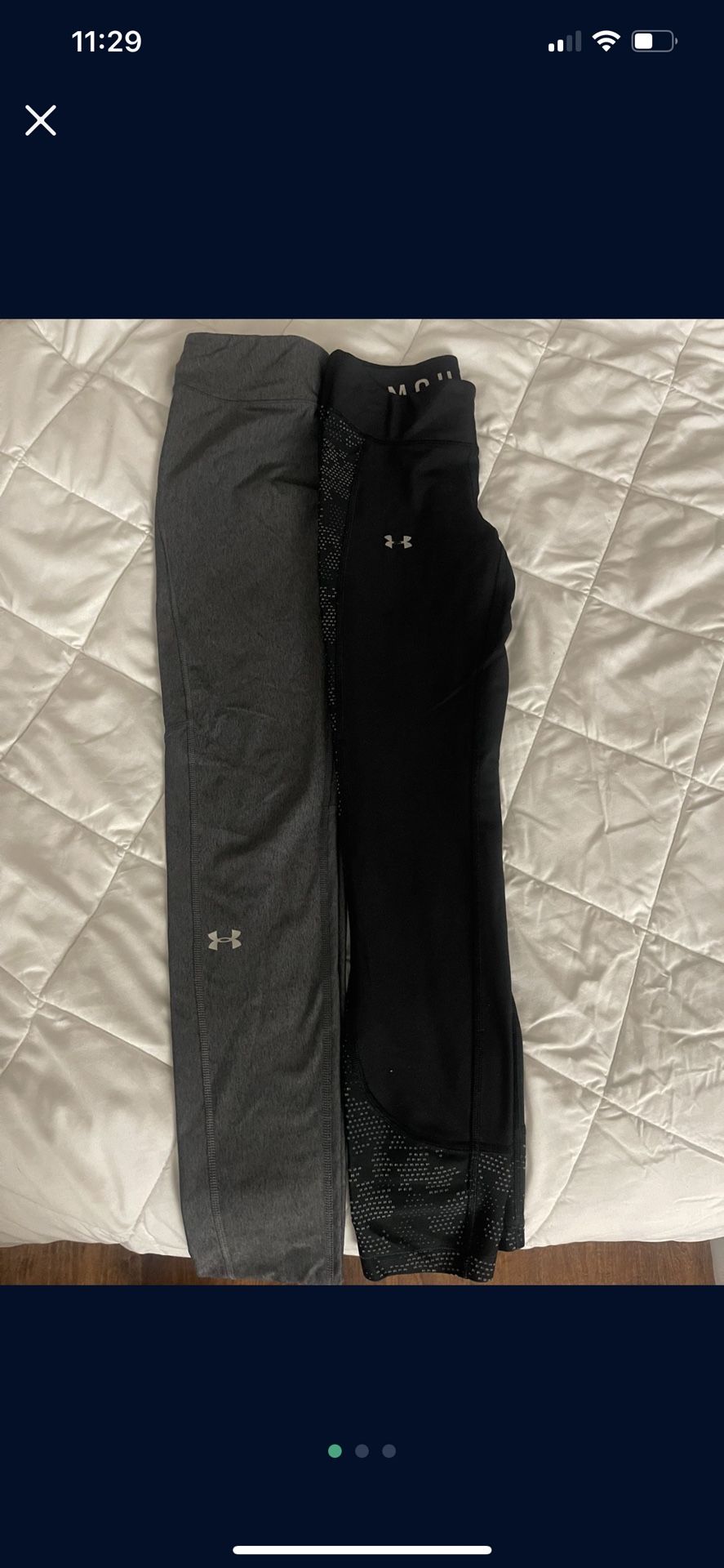 Bundle of 2 Under Armour leggings, both size Small. • Grey UA leggings – classic compression fit • Black UA leggings – breathable mesh detail, great for workouts Both in good pre-owned condition. No holes, stains, or odors. Smoke-free home. Price is for both together. $28 local pickup Swedesboro or Wilmington