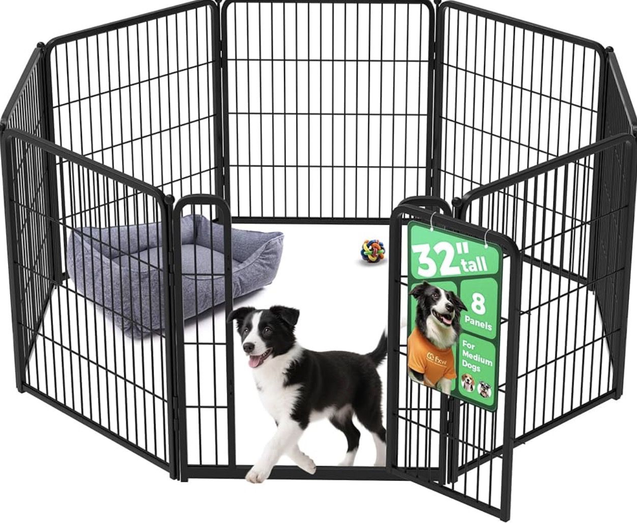 213"L x 0.1"W x 32"H Homeplus Unleashed Indoor Dog Playpen - Stress-Free and Safe Play, Heavy Duty 32 Inch 8 Panels Dog Pen for Small and Medium Dogs, Black