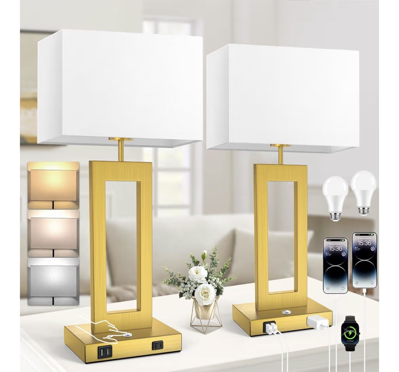Table Lamps for Bedrooms Set of 2, 27.2’’ Super Tall Modern Gold Lamps for Living Room Nightstand End Tables, Button Touch Control Bedside Lamps with