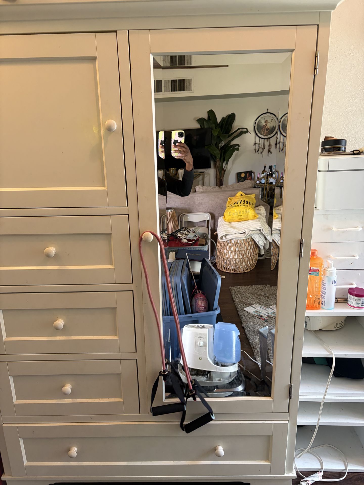 ONE OF A KIND MULTIDIMENSIONAL DRAWER AND CLOSET DRESSER THAT CAN BE USED IN AN OFFICE, AS DECOR FOR A STATEMENT PIECE, EXTRA STORAGE SPACE FOR CLOTHES, AND MORE! I AM TAKING THE BEST OFFER MUST PICK UP FROM CEDAR HILL BY SATURDAY 1/14!! VERY HEAVY