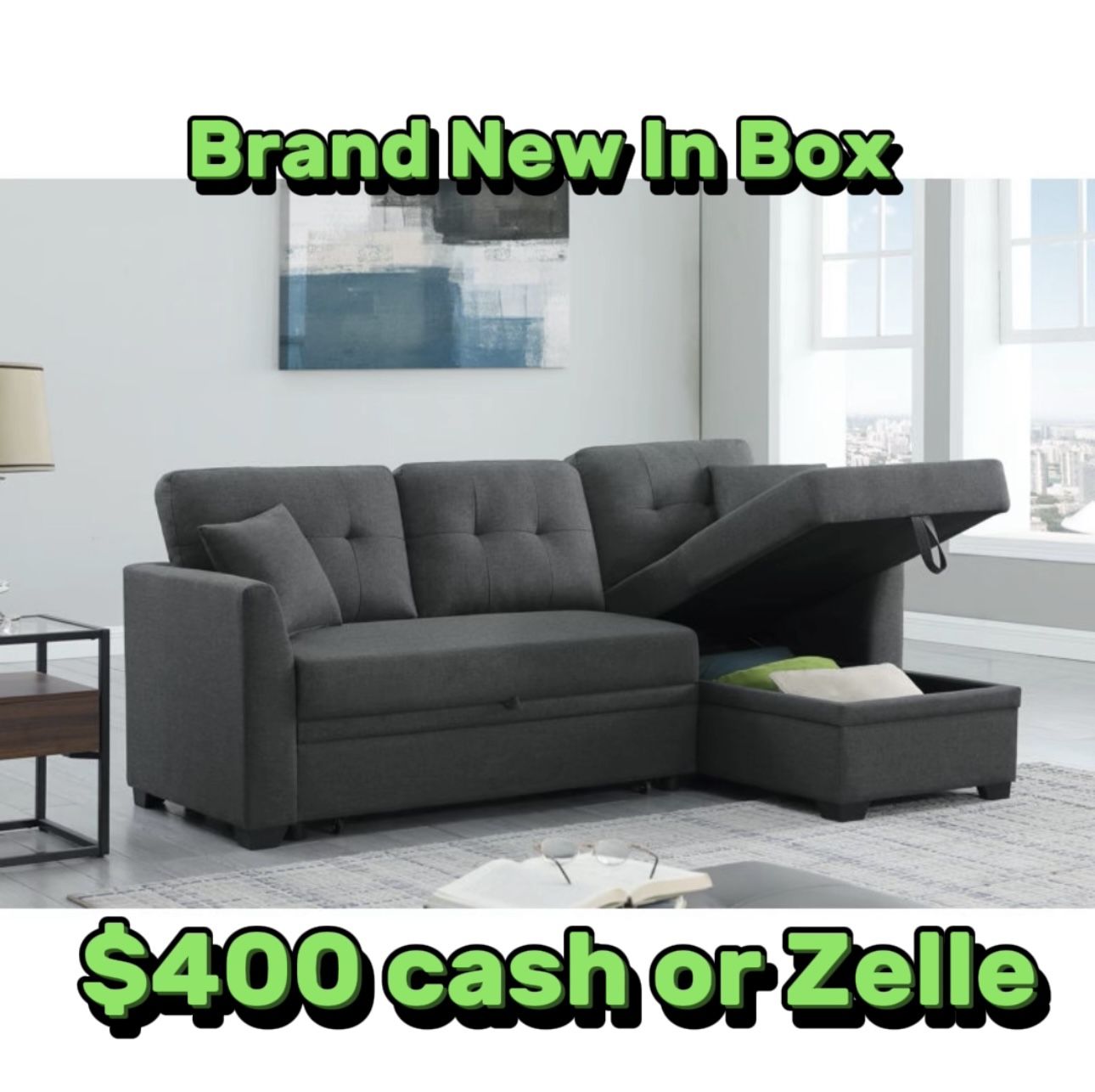 Brand New In Box π¦ L Sectional Couch ποΈ Pull Out Bed β Reversible L β Storage Underneath β Asking $400 πΈπΈπΈ More items for sale couch sofa barstool chairs night stands coffee table sectional etc