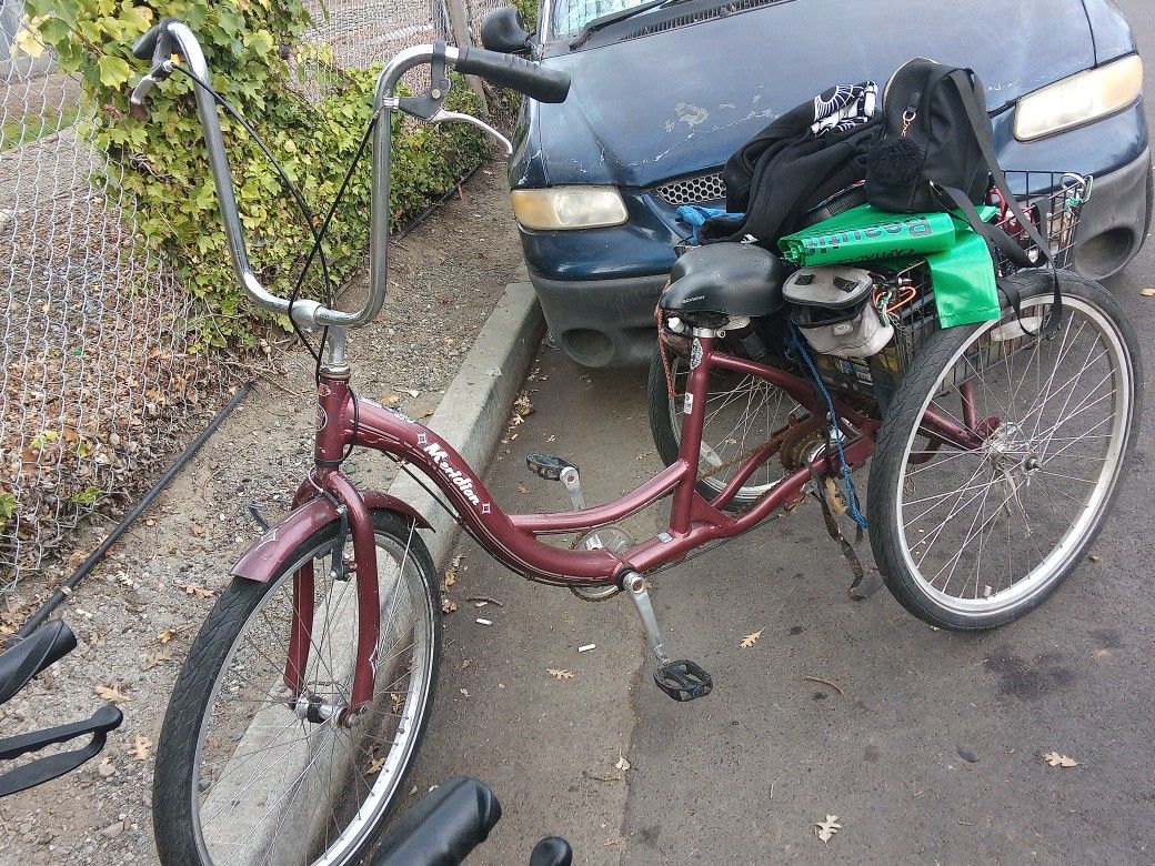 needs little minor ujustments it's a meridian bike frame used it has little dents on the fenders it's maroon the price is not firm brakes need to be put back on cause there off very heavy bike for me