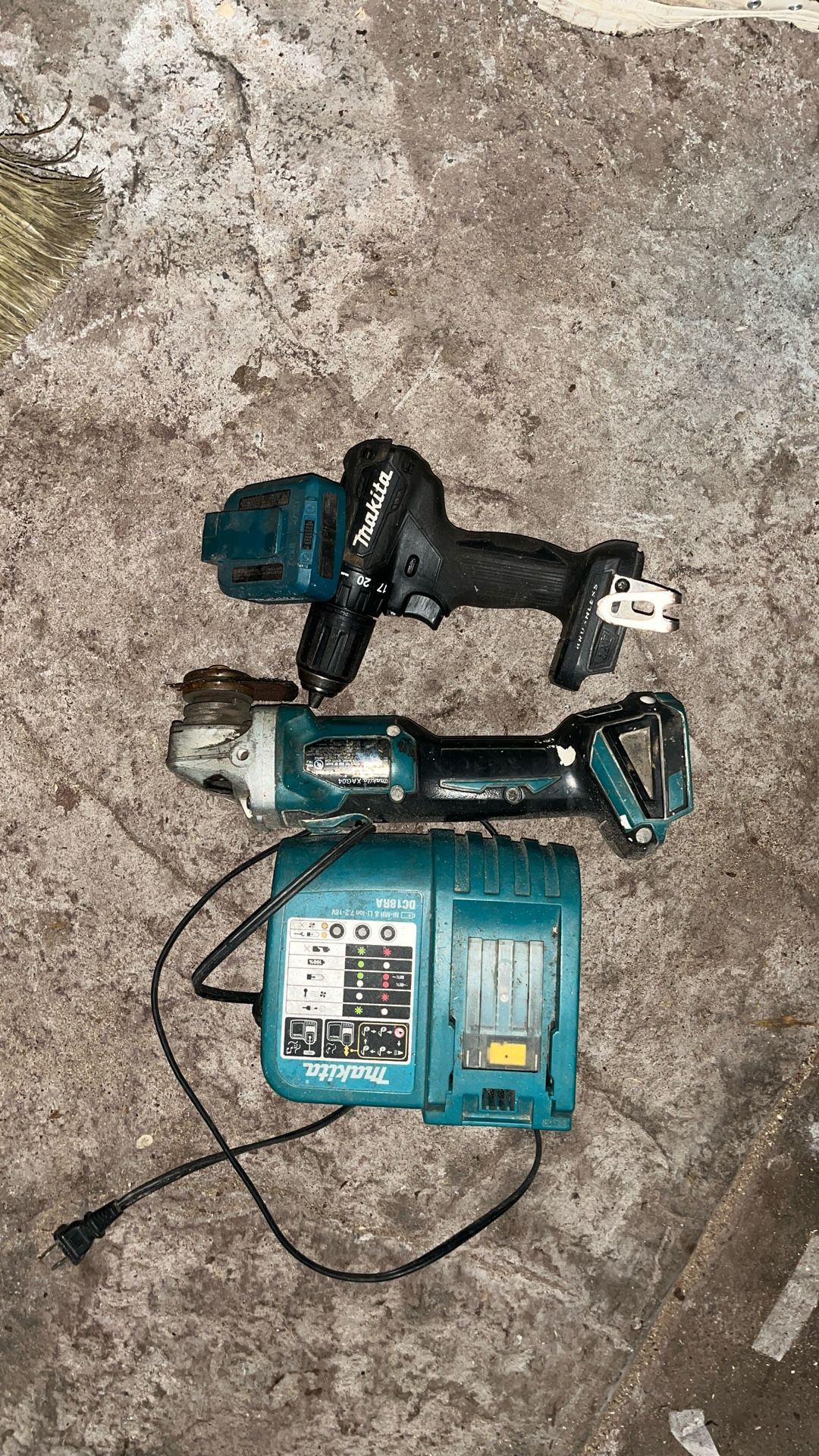 Everything is used, but works great comes with the drill grinder Makita usb attachment charger, and a battery charger