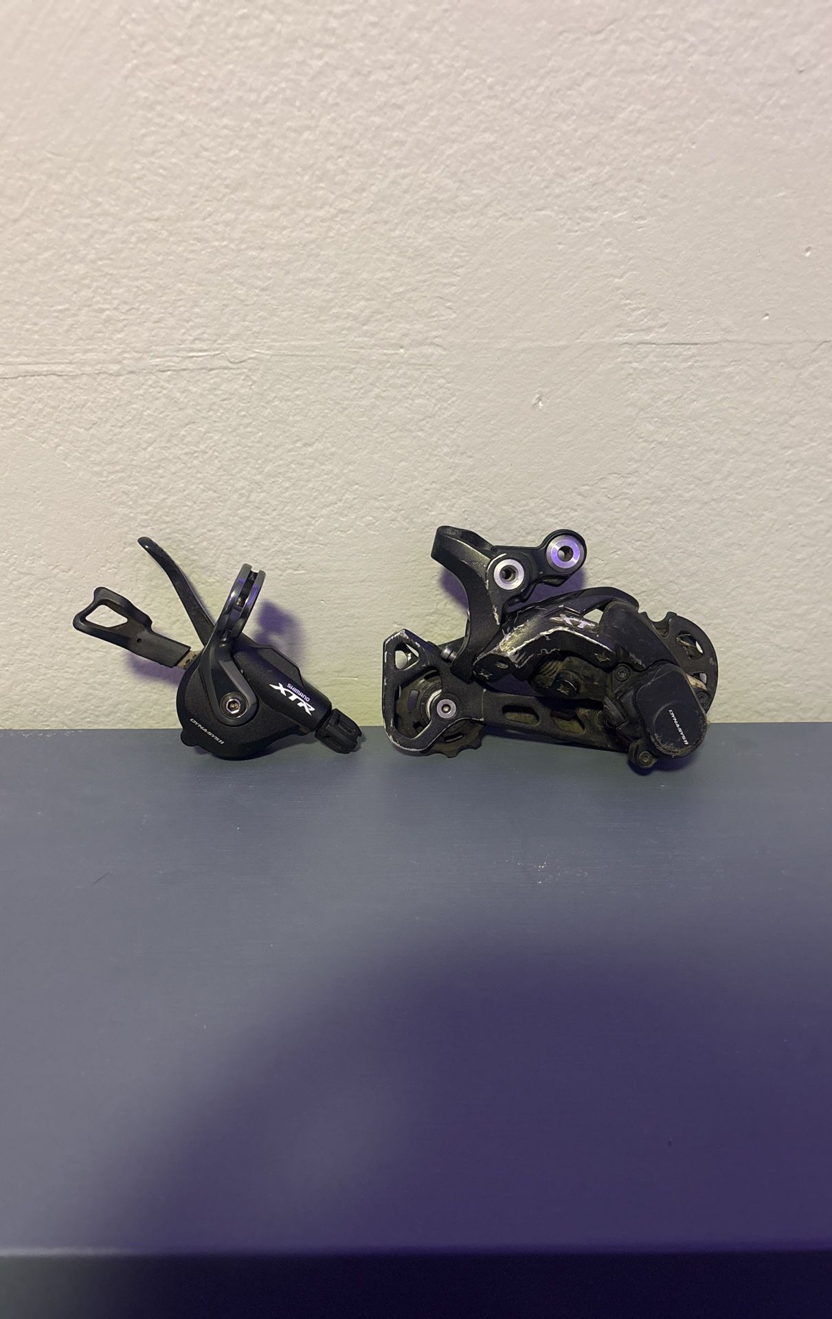 Xtr shifter mint condition, carbon shift lever, xt derailleur pretty beat up.