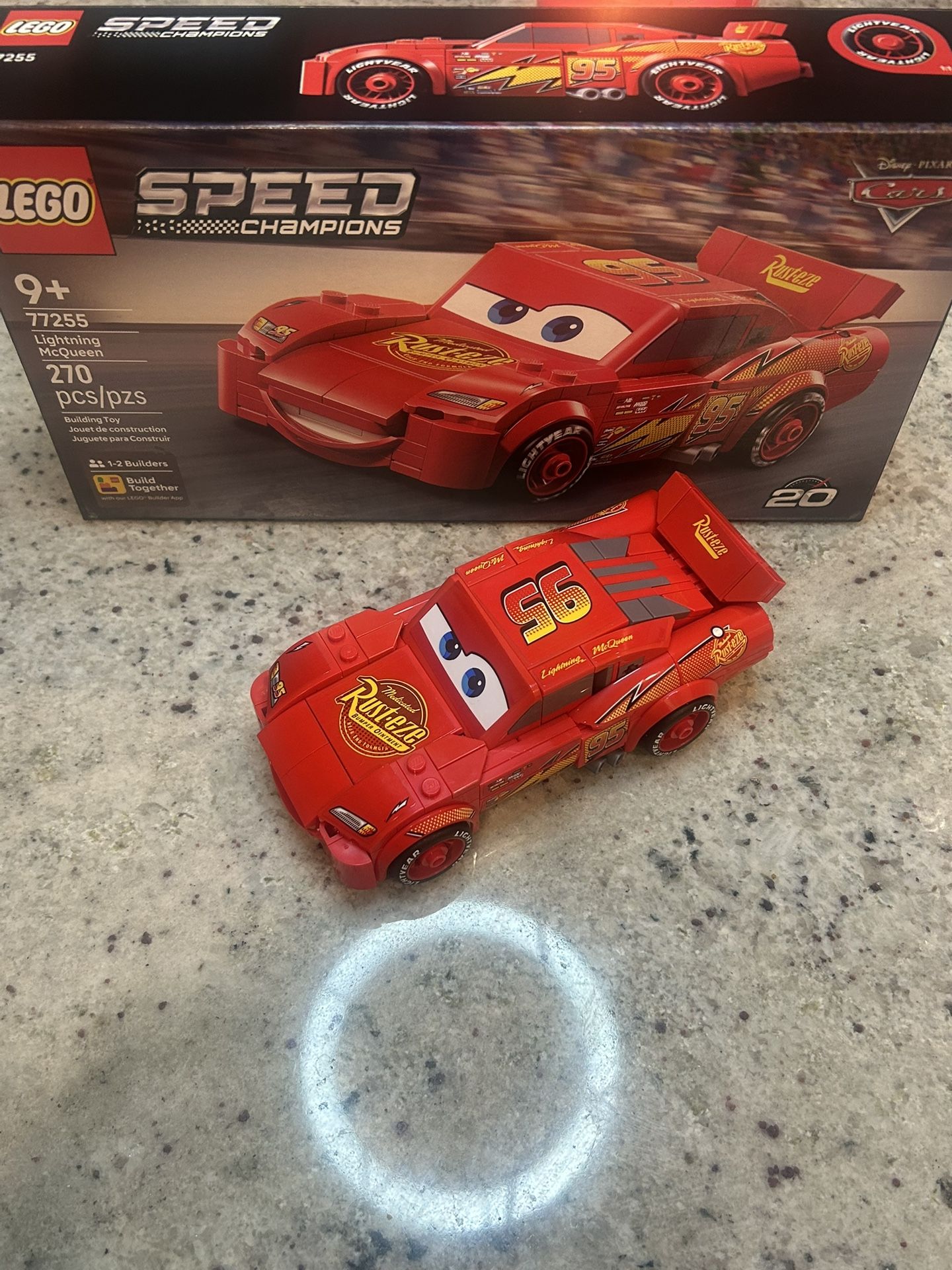 Free Shipping Fast Shipping Brand New Release Date 1/1/26 Celebrate the 20th anniversary of the beloved Disney Pixar movie Cars with this LEGO® Speed Champions ǀ Lightning McQueen (77255) building toy. This construction set for boys and girls ages 9 and up includes many of the design details from the iconic movie character. The Disney model features Lightning McQueen’s famous yellow and orange lightning bolt, number 95, Rust-Eze sponsor logo, tires imprinted with ’Lightyear’ and his famous headlight stickers. The car toy is also the only Speed Champions model with a detailed undercarriage so kids can enjoy extra play value. A great gift idea for kids and car fans, LEGO Speed Champions building sets let them build replicas from an extensive range of iconic vehicles. They can create each playset with confidence using the LEGO Builder app, which lets them zoom, rotate in 3D and track progress with easy-to-follow digital instructions. Set contains 270 pieces.