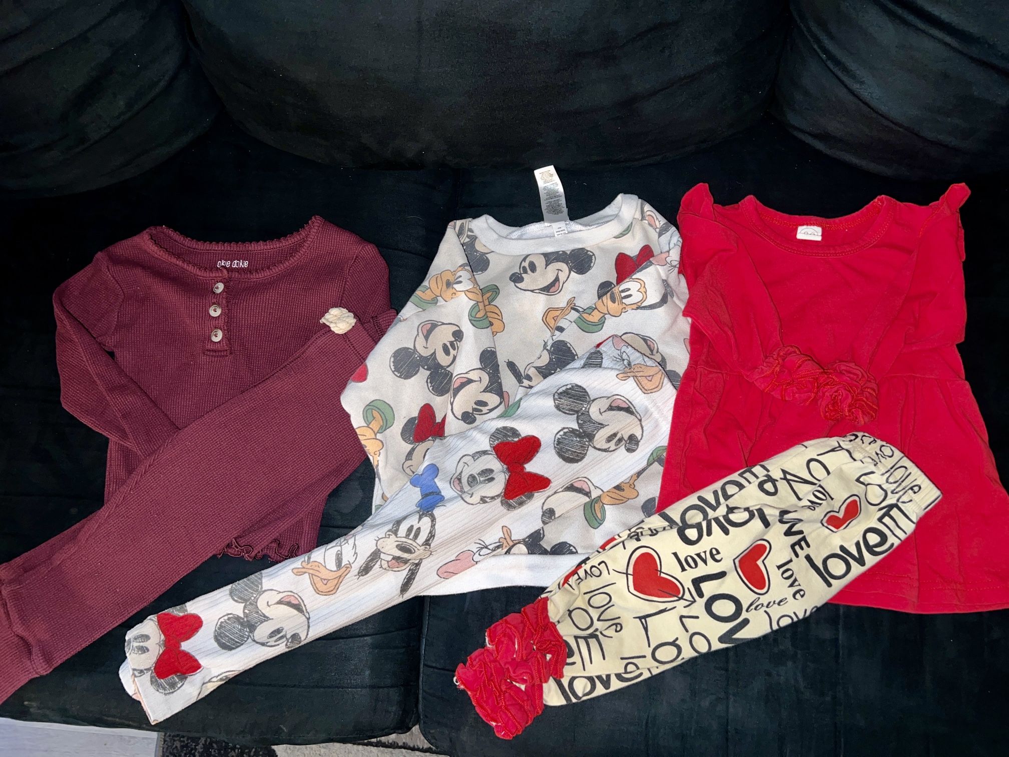 5 long sleeves, 3 dresses, 3 sets, 1 denim jacket, 1 blazer like cover up, 1 sweater, 1 cardigan, 2 3T long sleeves. Bundle with other sizes and we can work a deal!
