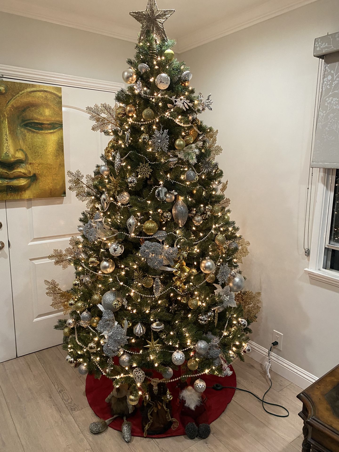 7.5 ft (4 feet wide) High-End Artificial Pre-lit Christmas Tree in excellent condition $300 cash/firm. All ornaments, tree skirt are included. Pick up in Garden Grove (Magnolia/Trask). Downsizing.