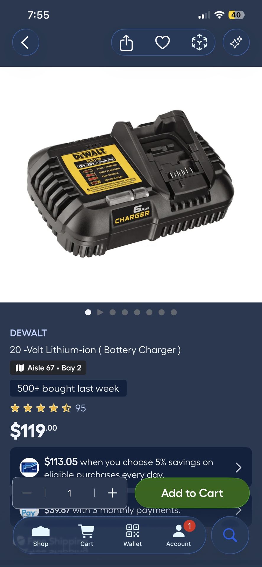 DEWALT 20 -Volt Lithium-ion (Battery Charger )