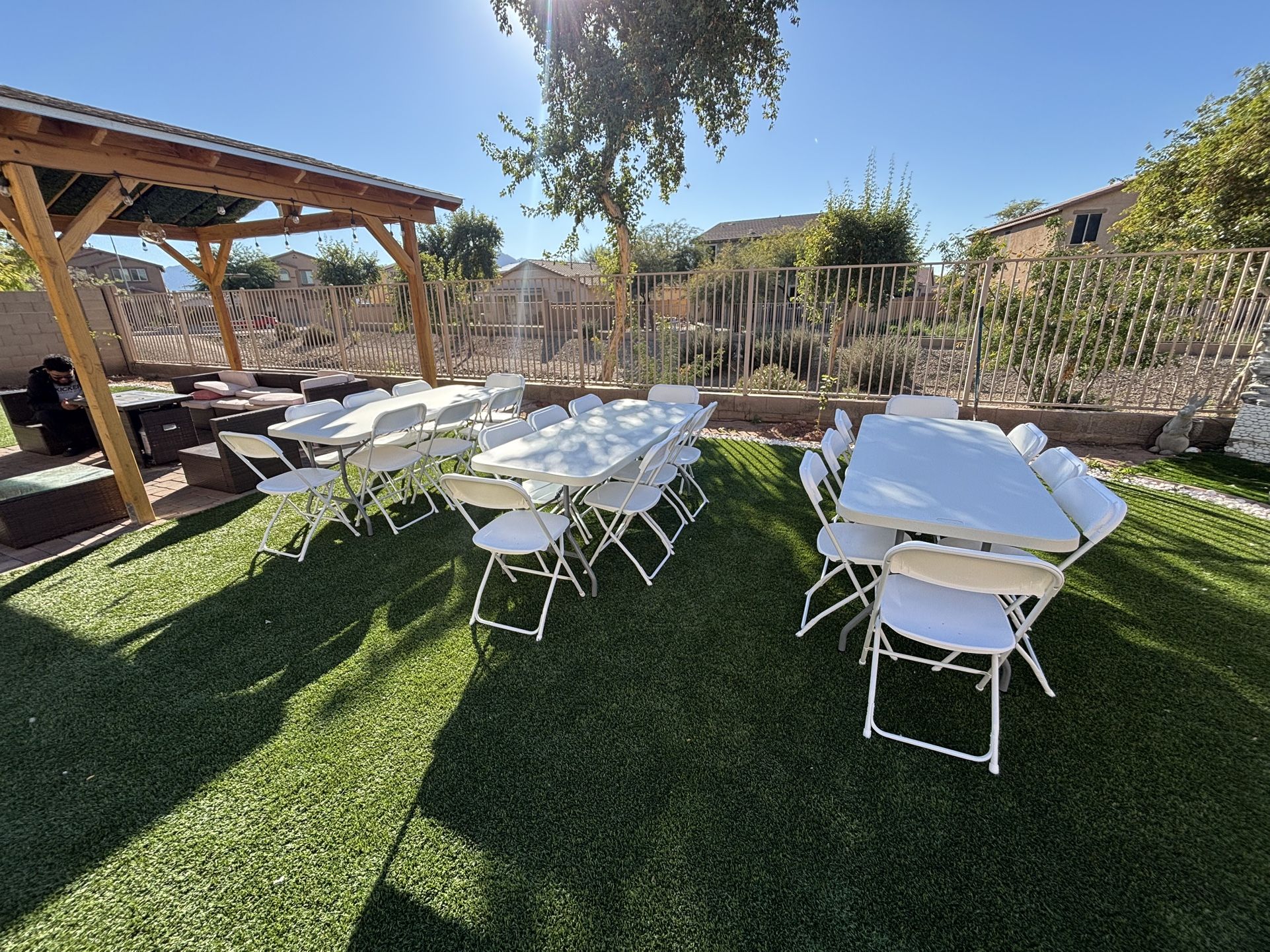 Chairs $1.50 tables $9+ delivery fee if far Ask for the bundle