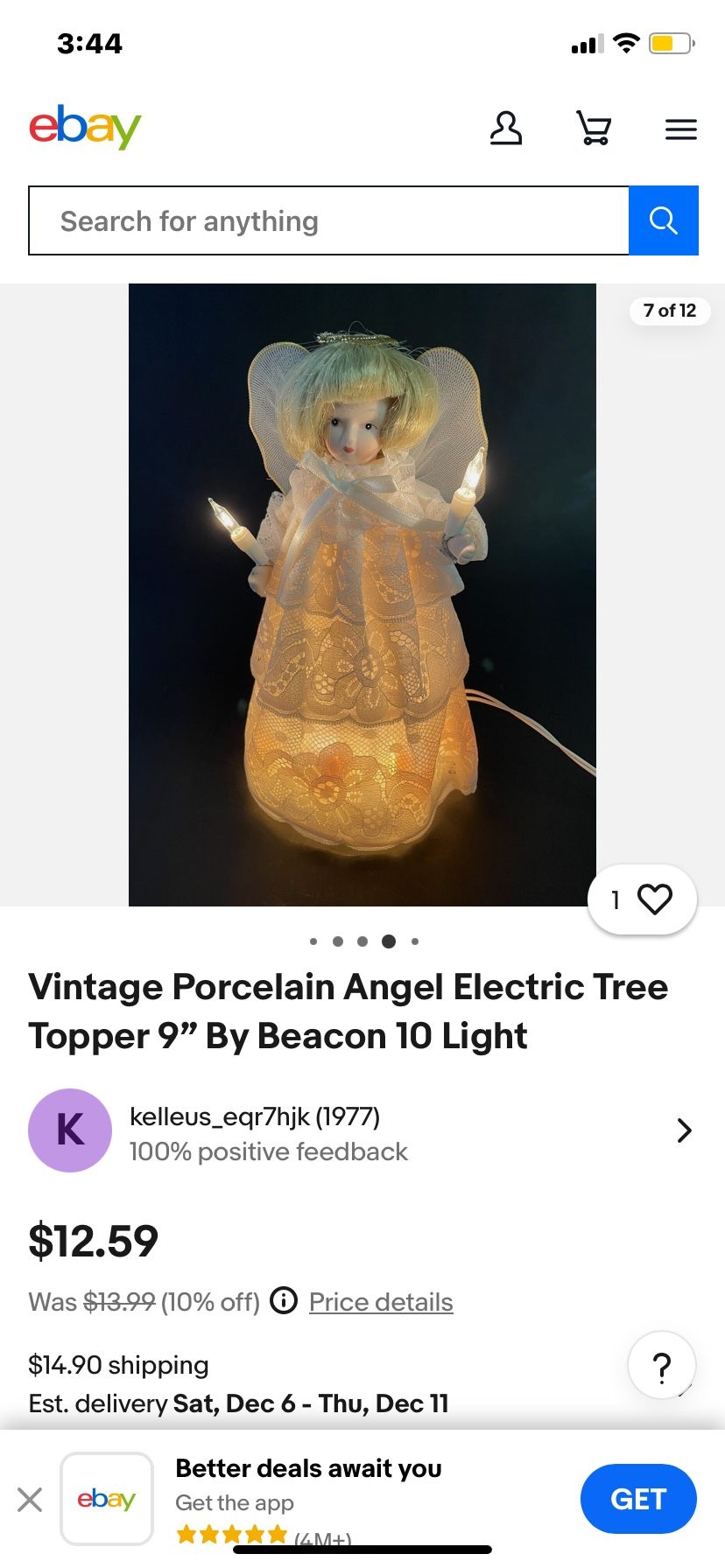 Vintage Porcelain Angel Electric Tree Topper 9” By Beacon 10 Light