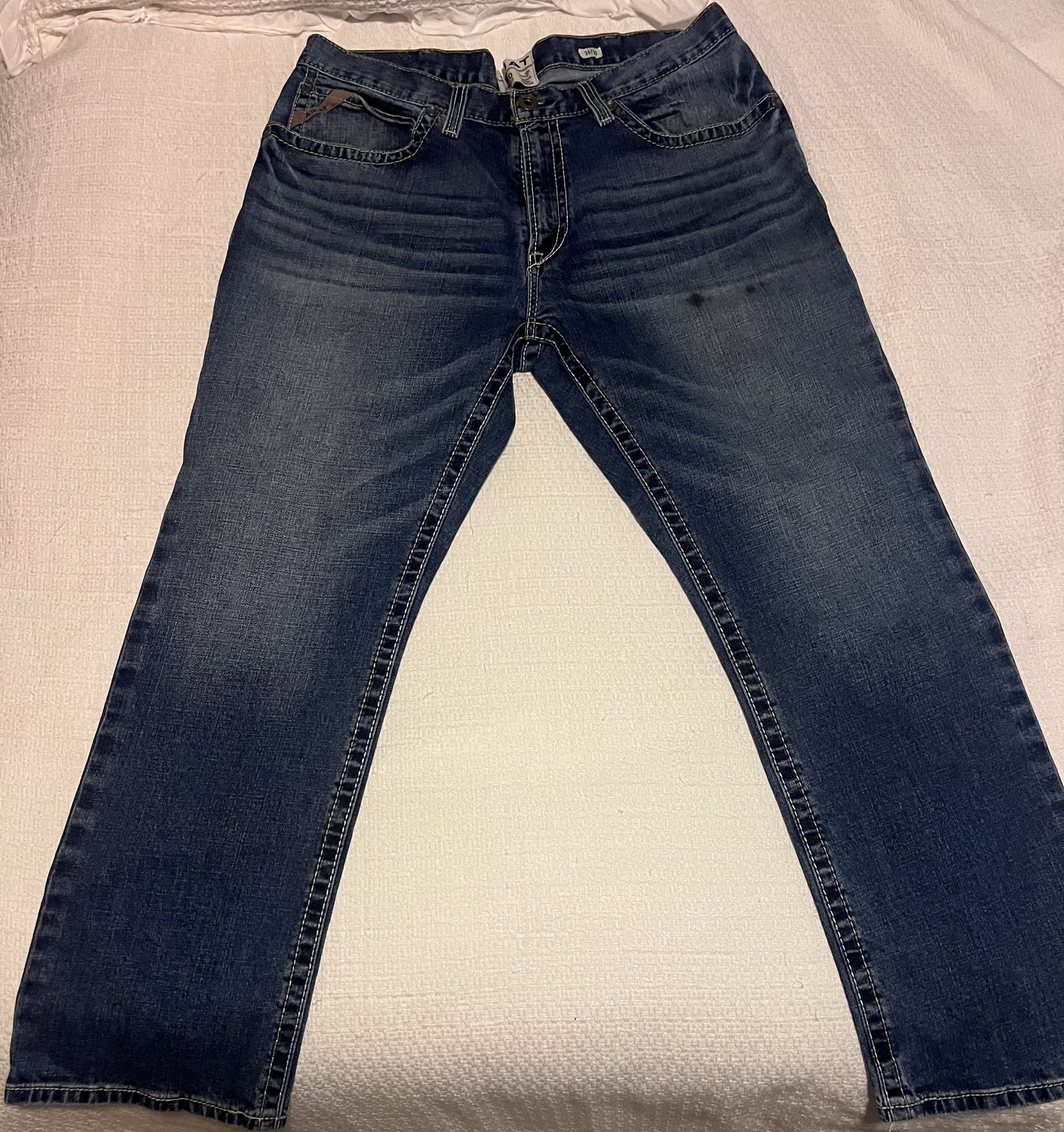 Used once Stain on Jean Use una vez Size 36W x 30L Ariat cavenders boot barn pants jeans western wear rodeo livestock tools toolbox construction plumbing concrete