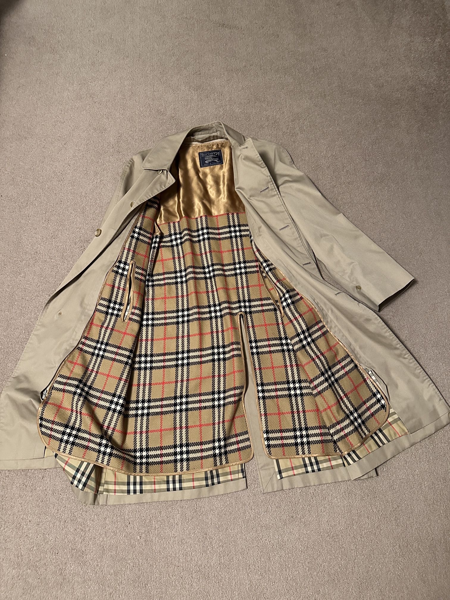Burberrys Vintage Beige Trench Coat Men’s – Nova Check Lining England Size-M