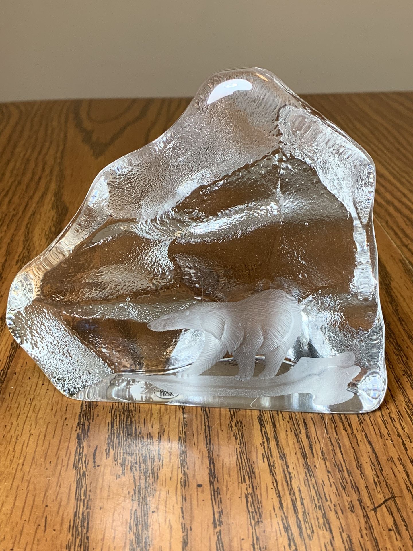 Mats Jonasson Sweden Glass Crystal Polar Bear Sculpture Paperweight Signed Ice