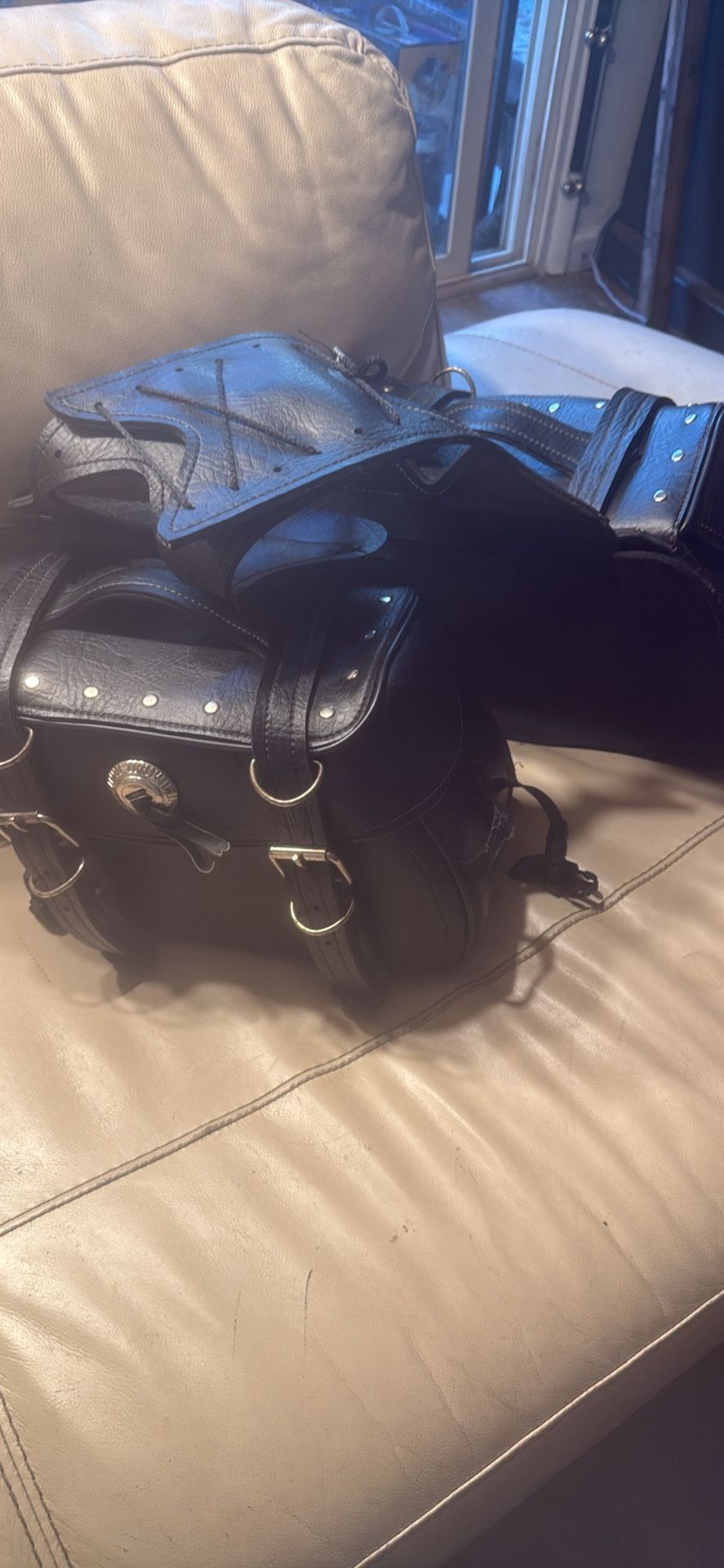 Great condition motorcycle leather saddlebags black pick up in Northeast Portland almost Gresham
