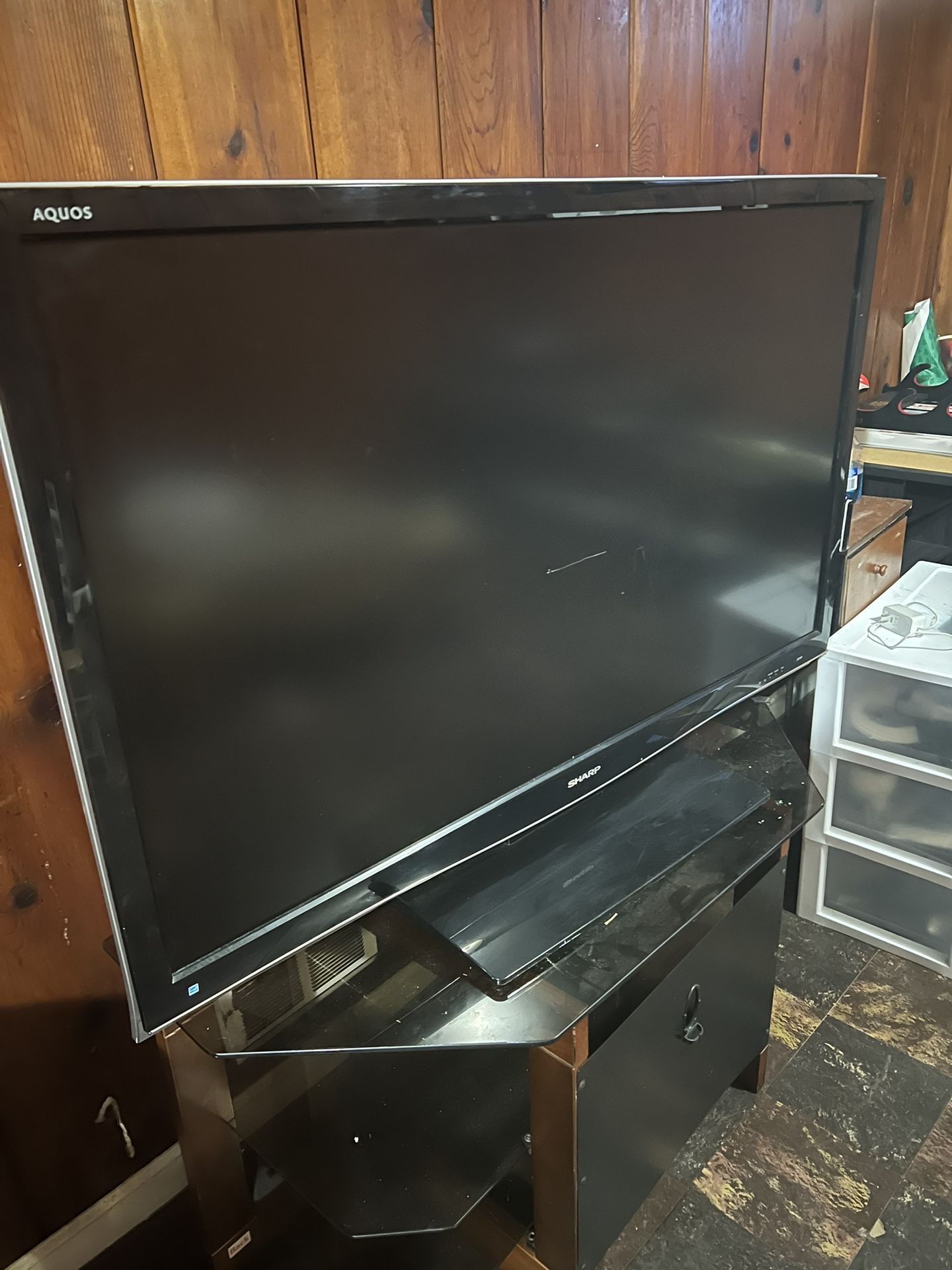 52” Sharp HDTV w/ Roku device included. Tv works fine and device work fine with no issues. Scratch on tv from moving but doesn’t affect picture or view.