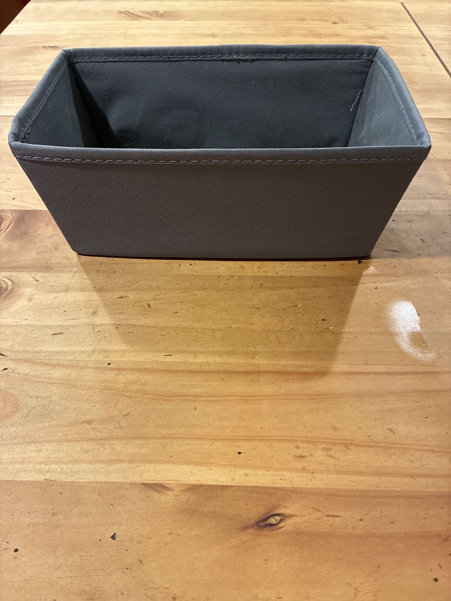 Sturdy gray fabric storage bin in good condition. Features reinforced sides to help it hold its shape and a built-in front handle for easy pulling from shelves or cubbies. Perfect for organizing: • Closets and shelves • Clothing, accessories, or shoes • Toys, books, or office supplies • Cube storage units Neutral gray color blends easily with most décor. Lightweight, collapsible when not in use, and easy to move. Condition: Clean and well kept Pickup: Local pickup preferred
