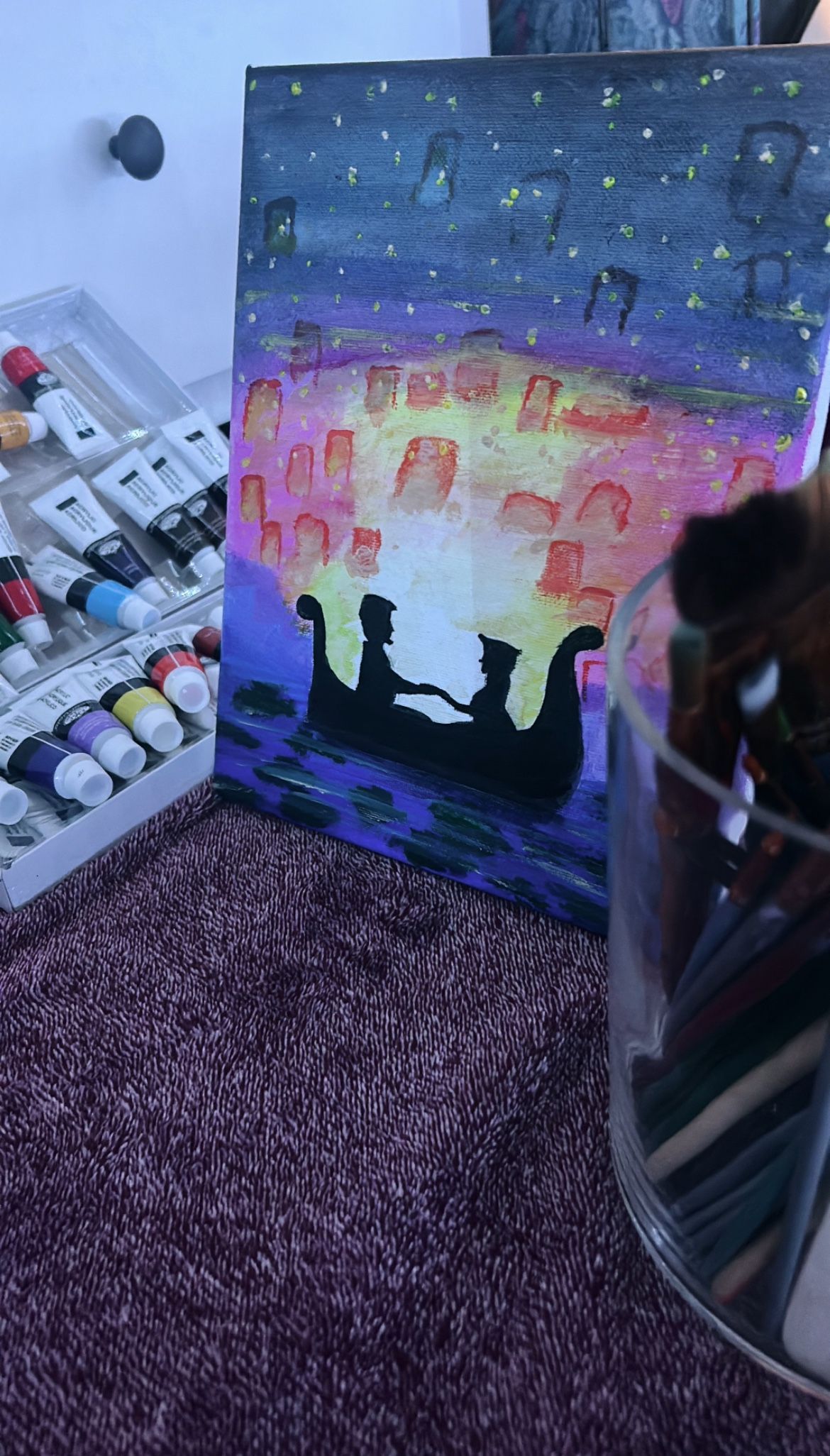 Offer on painting Tangled boat ride inspired painting Full acrylic paint used