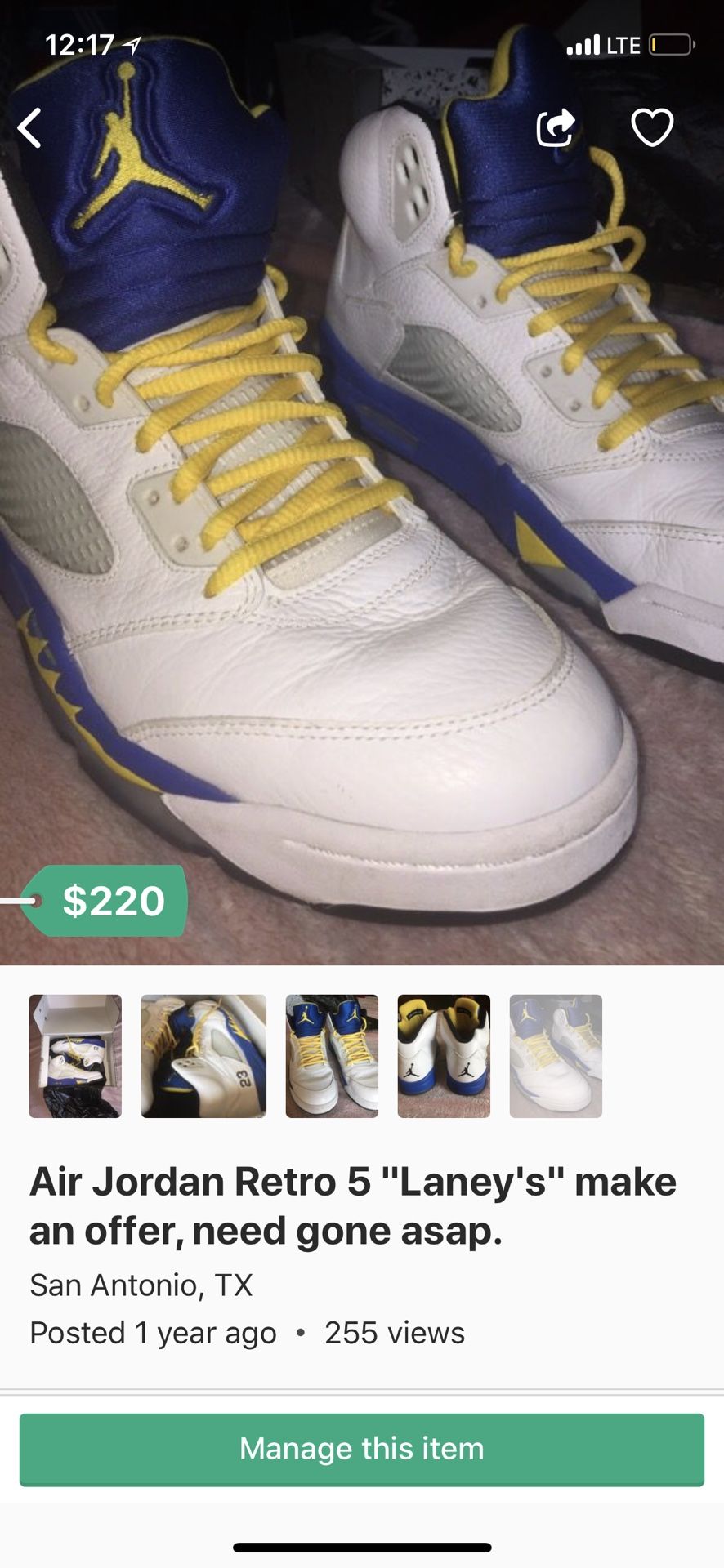 $200 sz 10.5 Air Jordan 5 “Laneys”