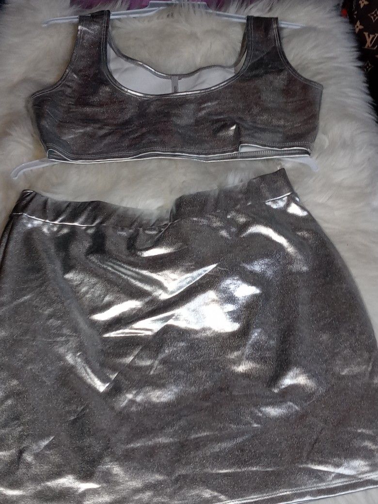 2 Piece Silver Womens Skirt Set