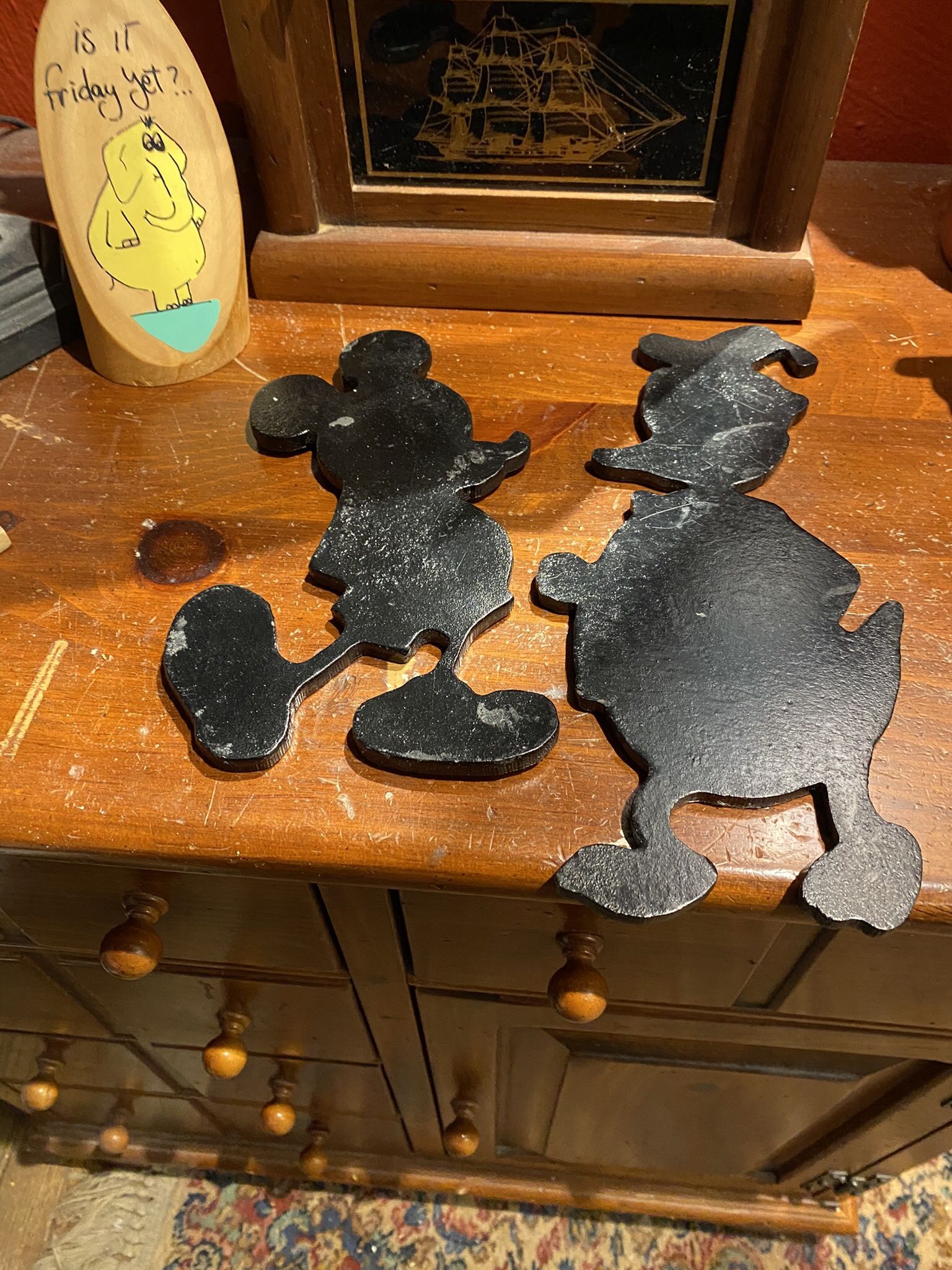 Classic and Timeless Walt Disney Donald Duck and Mickey Mouse Black Cast Iron Sillouettes. Heavy. Can be hung on wall. 40 dollars for both