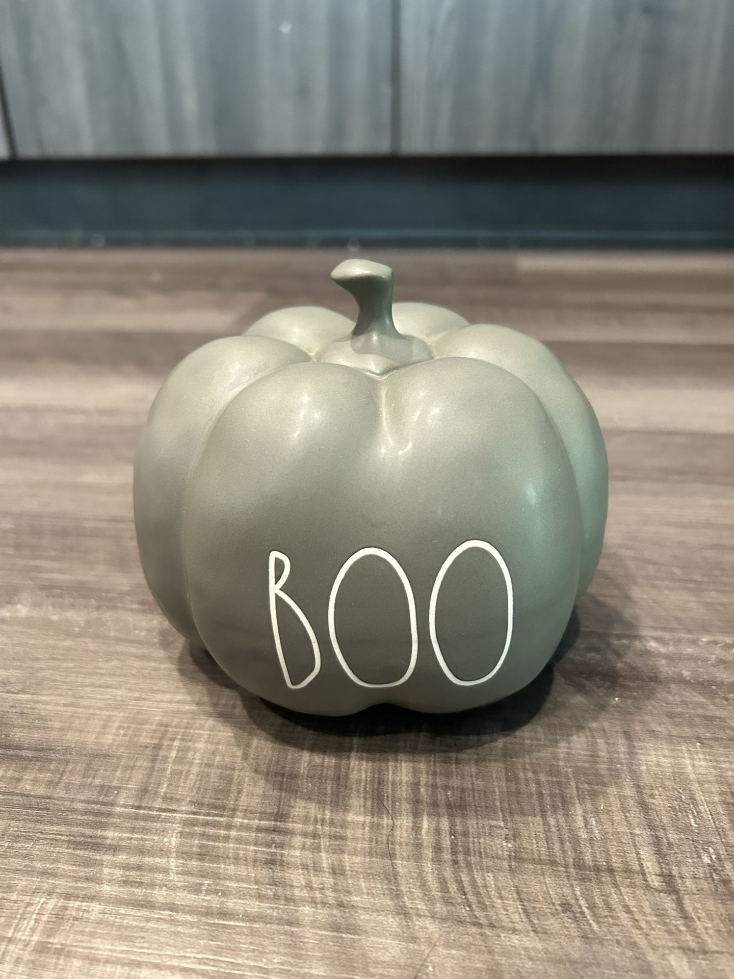 Rae Dunn green and white BOO pumpkin Holiday Halloween Thanksgiving Collectibles Decor Accents Boo Spooky Fall Ceramic