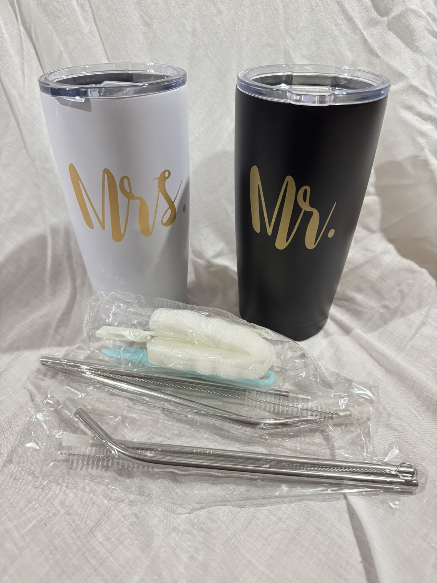 New Mr. & Mrs. Dual Drink Tumblers w Straws