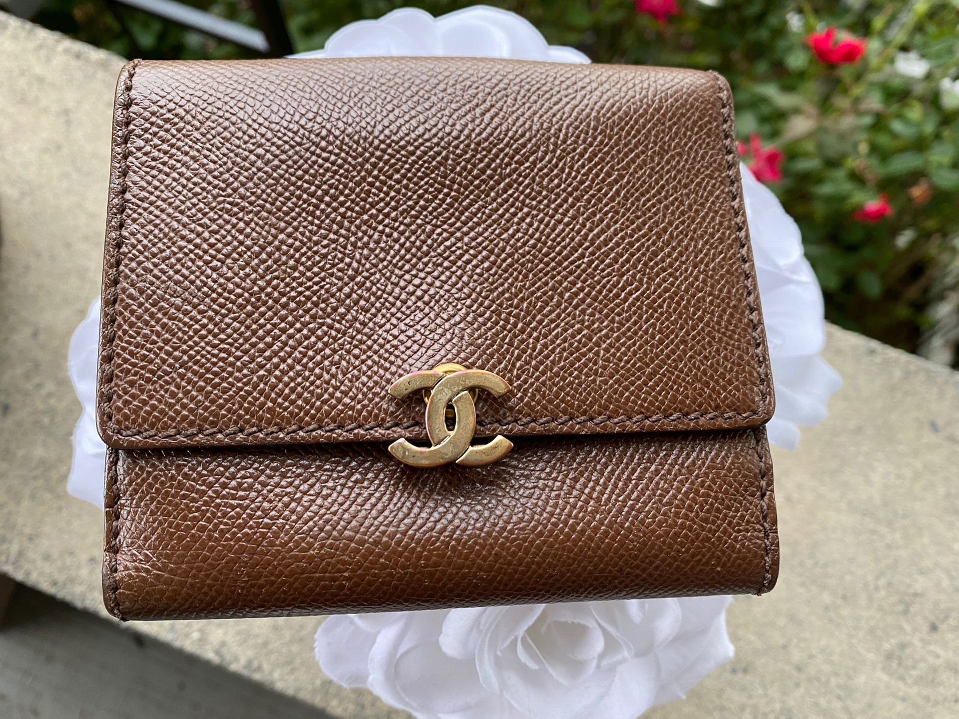 Authentic Chanel trifold wallet. Preowned in good condition. Inside of the wallet, it has pen marks as shown in the photos but no wear or tear on the leather. Dimensions: 4.5 x4x 5” .